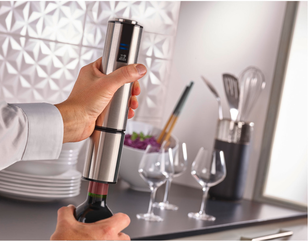 Elis Touch firmy Peugeot - elektryczny korkociąg, który łatwo poradzi sobie z każdym typem korka - idealny prezent dla wszystkich entuzjastów wina. Jest on połączeniem nowoczesnego designu i zaawansowanej technologii. Korpus ze stali nierdzewnej uzupełniają elementy z wysokiej jakości tworzywa sztucznego.