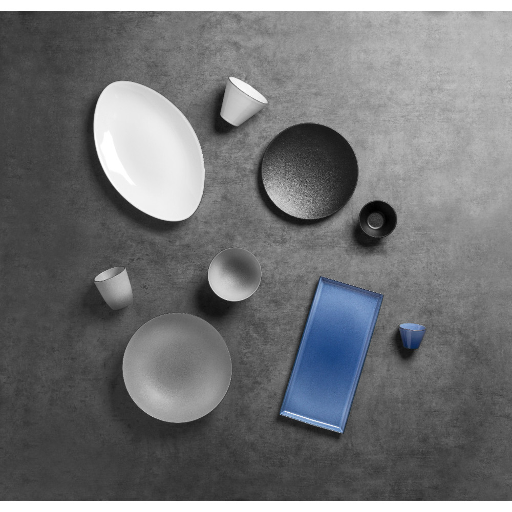 W wersji błękitno-białej dominujące błękit i biel współgrając sprawiają wrażenie jedwabistego woalu pokrywającego porcelanę. Jednocześnie czarny otok talerzy czy mis dodatkowo przykuwa naszą uwagę.