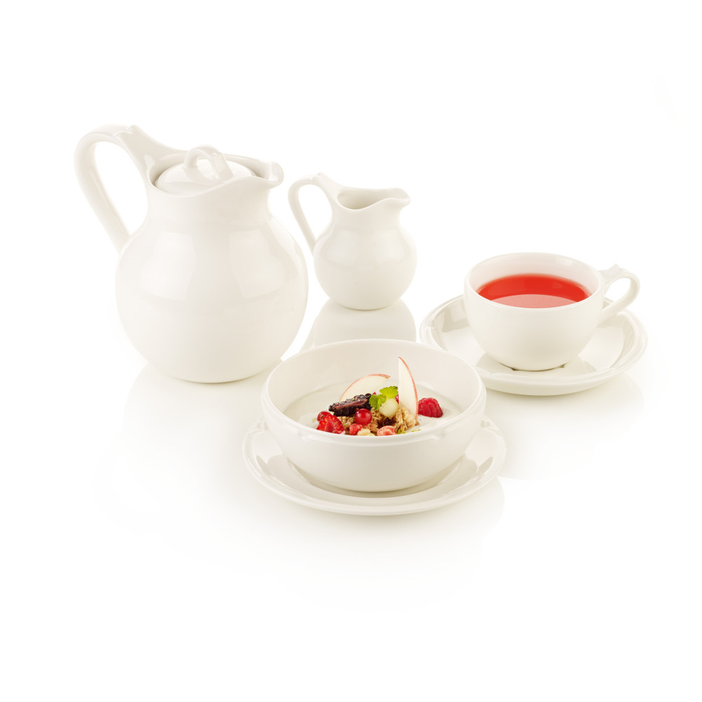 Klasyczna porcelana z linii ANNA zaprojektowana przez Mikaelę Dorfel przedstawia design "między wczoraj i dziś". Forma naczyń o łagodnych, subtelnych łukach, z delikatnym zdobieniem na krawędziach, to hołd dla tradycyjnej kuchni. Eleganckie talerze, półmiski i filiżanki sprawią, że każdy posiłek zyska ciepłą, "domową" oprawę.