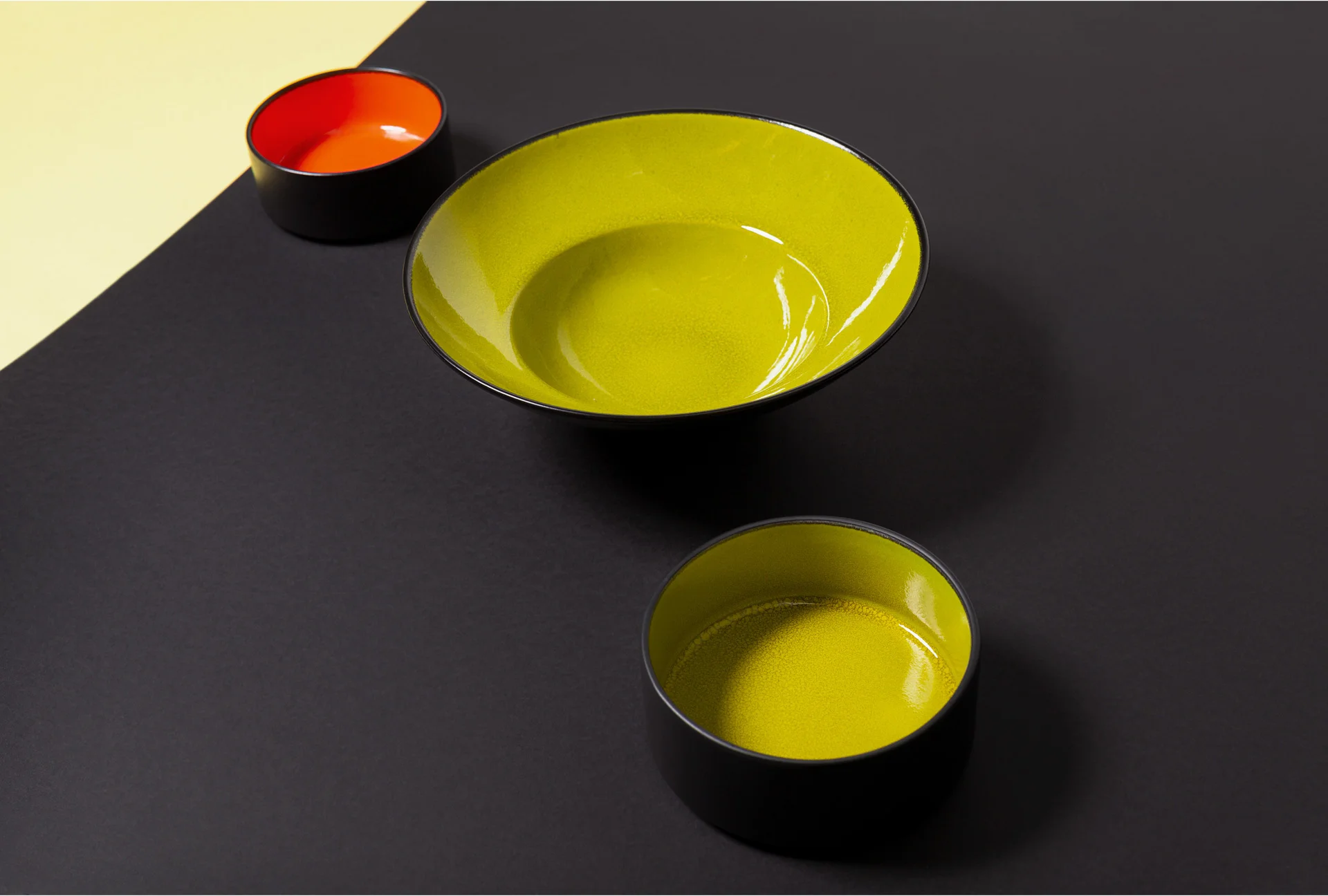 FIRE to ekstrawagancka linia porcelany, którą wyrózniają żywe, dynamiczne kolory. Ręcznie malowane, oryginalne w swojej intensywności barwy zieleni, pomarańczu i czerwieni nadają talerzowi unikalnego charakteru. Minimalistyczna forma eksponuje elektryzujące kolory wnętrza i matową czerń zewnętrznej glazury talerza.