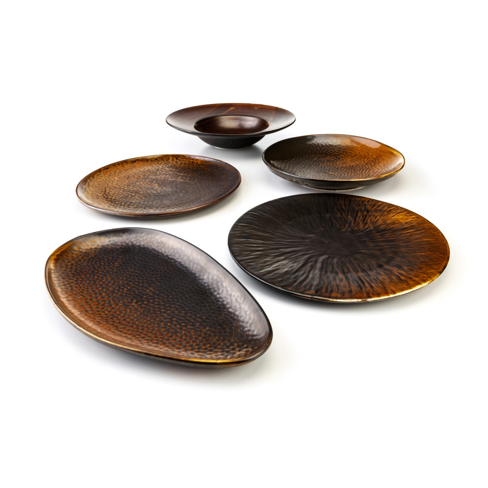Kolekcja FIRE to aż dziesięć różnych propozycji naczyń, które stworzą wyjątkowe wrażenie na Twoim stole. Połączenie miedzianego-szlachetnego koloru oraz ciekawej, młotkowanej struktury porcelany to obecnie bardzo mocny trend w wyposażeniu restauracji czy jadalni. Kolekcja inspirowana starzeniem się brązu, nierównomierna faktura oraz subtelne refleksy uzyskane dzięki nowatorskiej metodzie wypalania porcelany, to idealne tło do wyeksponowania serwowania dań. Połączenie kolekcji FIRE z elementami linii DEEP BLUE to wyjątkowo kreatywna propozycja dla osób poszukujących nietuzinkowych naczyń. Mieszanie się barw postarzanej miedzi z mocnym, niezwykle modnym kobaltowym granatem kolekcji DEEP BLUE doskonale odnajdą się zarówno w odważnych, nowoczesnych wnętrzach, jak i tych z nutą ekstrawagancji. Świetnym uzupełnieniem do takiego zestawu będą sztućce VERLO DESTELLO COPPER oraz szkło VERVINO marki Schott Zwiesel. Oczaruj swych gości topową zastawą i wyjątkową aranżacja stołu! p>Ręczne wykończenie porcelany, najwyższej jakości surowiec i charakterystyczny design, tworzą wrażenie przenikania się klasyki z nowoczesnością. Wszystkie linie porcelany Verlo zostały stworzone również z myślą o profesjonalnej gastronomii, są wytrzymałe i odporne na wyszczerbienia. Rozmaitość form, struktur i kolorów będzie wspaniałym tłem dla kreatywności miłośnika kuchni.