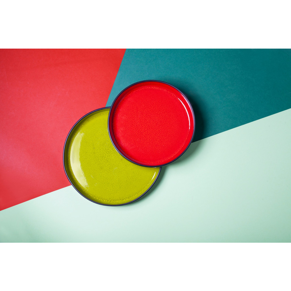FIRE to ekstrawagancka linia porcelany, którą wyrózniają żywe, dynamiczne kolory. Ręcznie malowane, oryginalne w swojej intensywności barwy zieleni, pomarańczu i czerwieni nadają talerzowi unikalnego charakteru. Minimalistyczna forma eksponuje elektryzujące kolory wnętrza i matową czerń zewnętrznej glazury talerza.