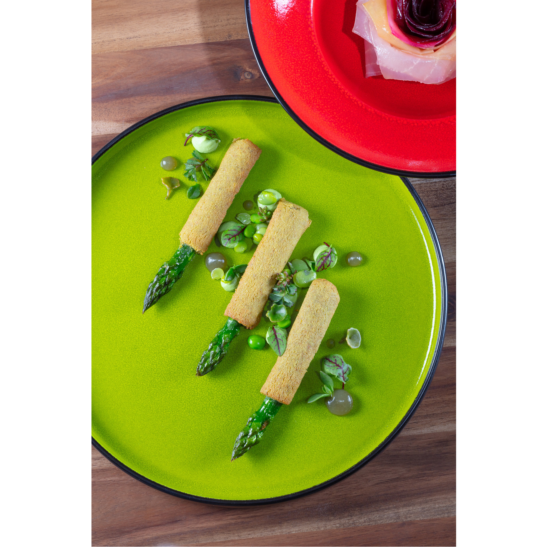 FIRE to ekstrawagancka linia porcelany, którą wyrózniają żywe, dynamiczne kolory. Ręcznie malowane, oryginalne w swojej intensywności barwy zieleni, pomarańczu i czerwieni nadają talerzowi unikalnego charakteru. Minimalistyczna forma eksponuje elektryzujące kolory wnętrza i matową czerń zewnętrznej glazury talerza.