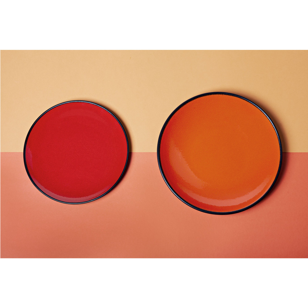 FIRE to ekstrawagancka linia porcelany, którą wyrózniają żywe, dynamiczne kolory. Ręcznie malowane, oryginalne w swojej intensywności barwy zieleni, pomarańczu i czerwieni nadają talerzowi unikalnego charakteru. Minimalistyczna forma eksponuje elektryzujące kolory wnętrza i matową czerń zewnętrznej glazury talerza.