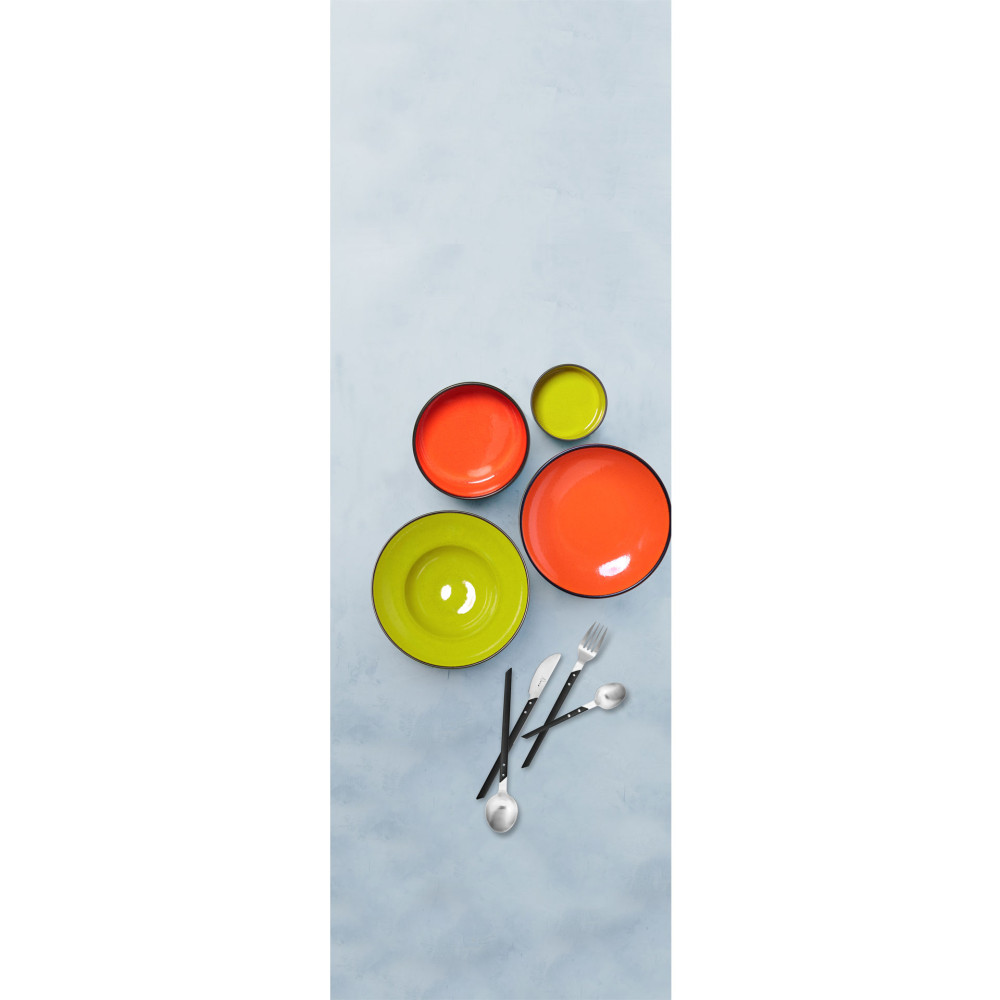 FIRE to ekstrawagancka linia porcelany, którą wyrózniają żywe, dynamiczne kolory. Ręcznie malowane, oryginalne w swojej intensywności barwy zieleni, pomarańczu i czerwieni nadają talerzowi unikalnego charakteru. Minimalistyczna forma eksponuje elektryzujące kolory wnętrza i matową czerń zewnętrznej glazury talerza.