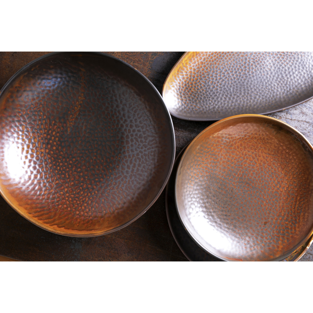 Umiejętne zastosowanie barw i innych komponentów podczas nakładania i wypalania szkliwa reaktywnego powoduje, że naczynia z tej kolekcji mają podobny charakter i doskonale się uzupełniają. Osiągnięty efekt, do złudzenia przypomina naczynia wyprodukowane przez rzemieślnika. Tworzymy w ten sposób unikalne kompozycje, które są ozdobą stołów w nowocześnie urządzonych mieszkaniach i restauracjach.