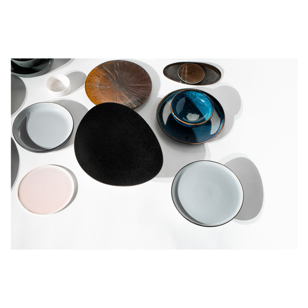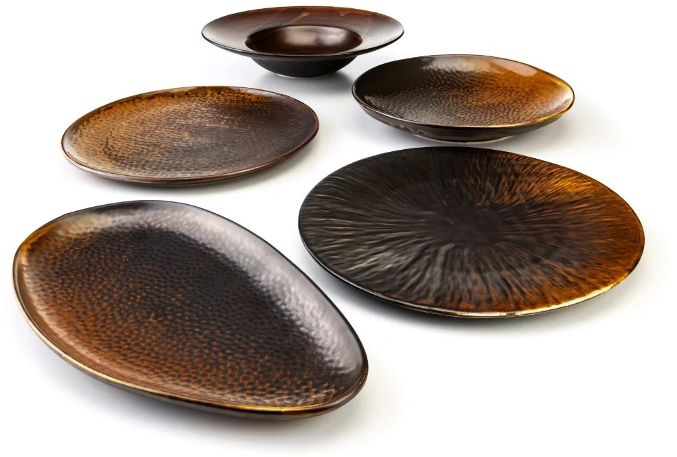 Umiejętne zastosowanie barw i innych komponentów podczas nakładania i wypalania szkliwa reaktywnego powoduje, że naczynia z tej kolekcji mają podobny charakter i doskonale się uzupełniają. Osiągnięty efekt, do złudzenia przypomina naczynia wyprodukowane przez rzemieślnika. Tworzymy w ten sposób unikalne kompozycje, które są ozdobą stołów w nowocześnie urządzonych mieszkaniach i restauracjach.