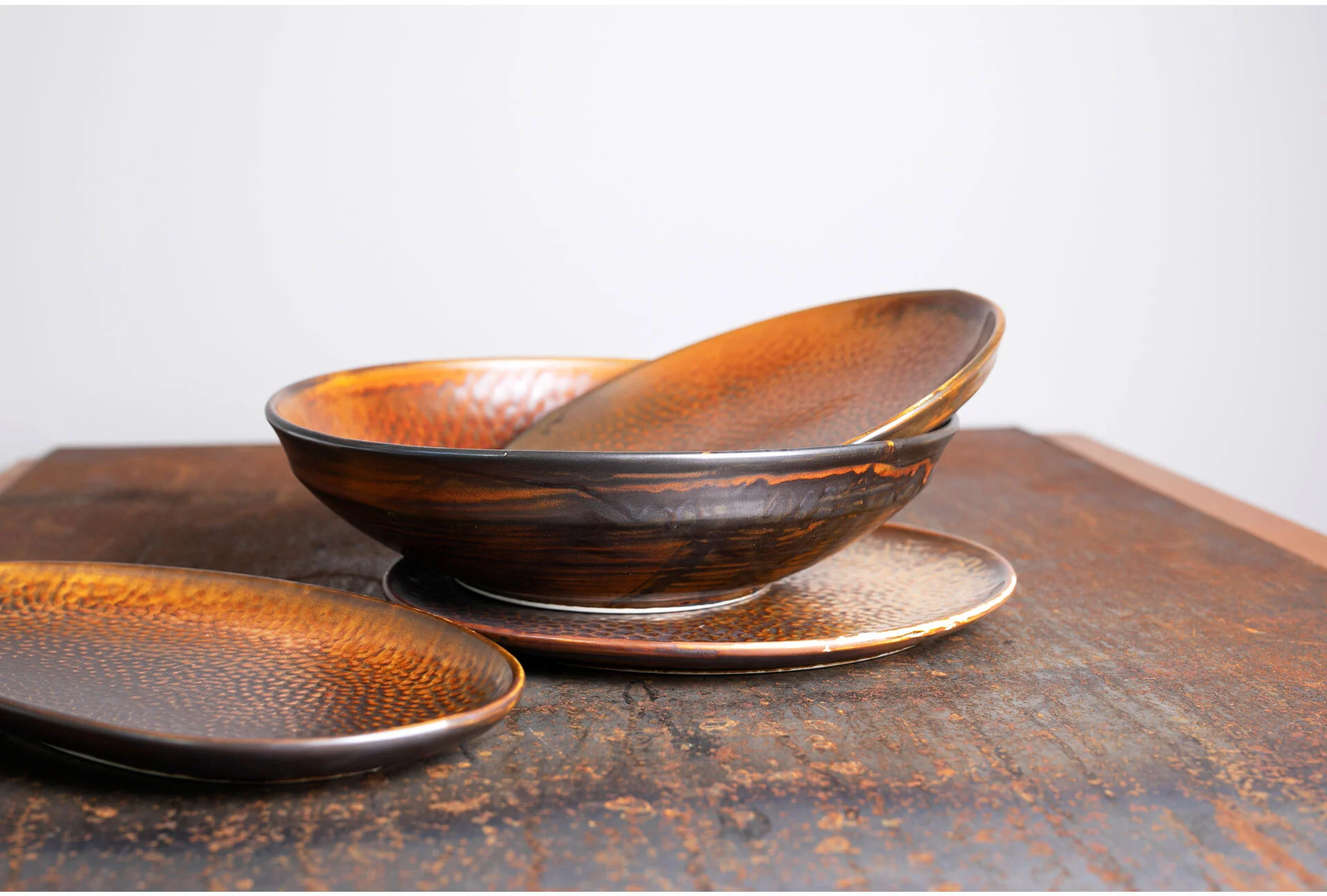 Umiejętne zastosowanie barw i innych komponentów podczas nakładania i wypalania szkliwa reaktywnego powoduje, że naczynia z tej kolekcji mają podobny charakter i doskonale się uzupełniają. Osiągnięty efekt, do złudzenia przypomina naczynia wyprodukowane przez rzemieślnika. Tworzymy w ten sposób unikalne kompozycje, które są ozdobą stołów w nowocześnie urządzonych mieszkaniach i restauracjach.