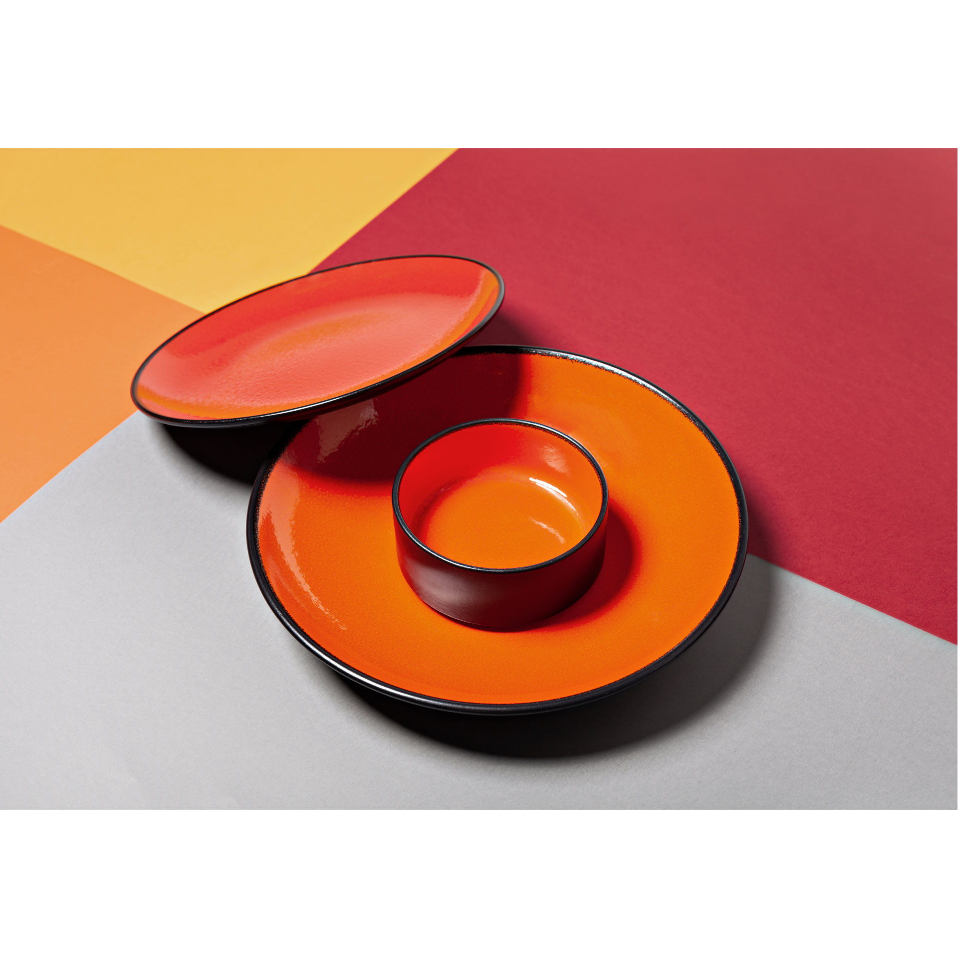 FIRE to ekstrawagancka linia porcelany, którą wyrózniają żywe, dynamiczne kolory. Ręcznie malowane, oryginalne w swojej intensywności barwy zieleni, pomarańczu i czerwieni nadają talerzowi unikalnego charakteru. Minimalistyczna forma eksponuje elektryzujące kolory wnętrza i matową czerń zewnętrznej glazury talerza.