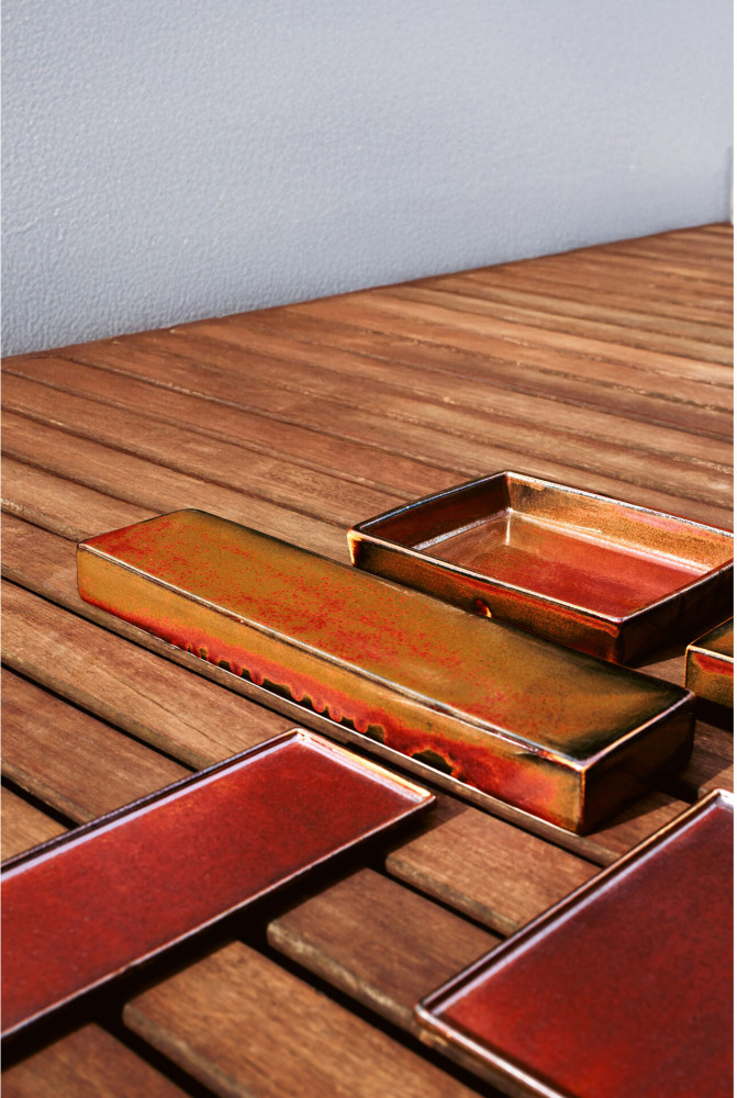 Powierzchnia każdego elementu została pokryta reaktywnym szkliwem o wysokim połysku, które uwydatnia intensywność kolorów i efekt subtelnego nakrapiania. To zasługa nowatorskiej techniki wypalania, dzięki której każdy egzemplarz porcelany FLAME wygląda jak unikalne dzieło rzemieślniczej sztuki.