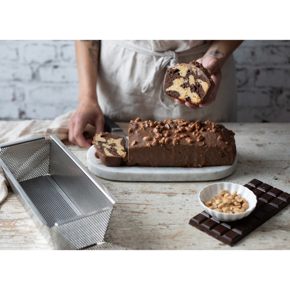 Równomierne, idealne wypieczenie ciast dzięki 2-milimetrowym perforacjom na całej powierzchni formy. Perforowana konstrukcja zapewnia doskonałe przewodzenie ciepła dla szybkiego, równomiernego pieczenia i odprowadzenia pary w celu uzyskania chrupkości wierzchu ciasta.