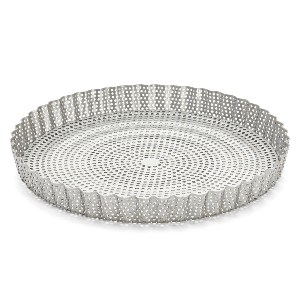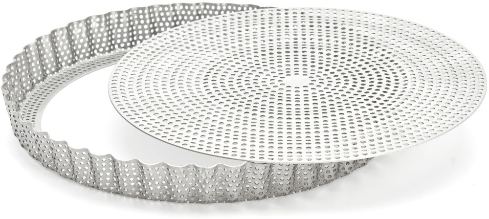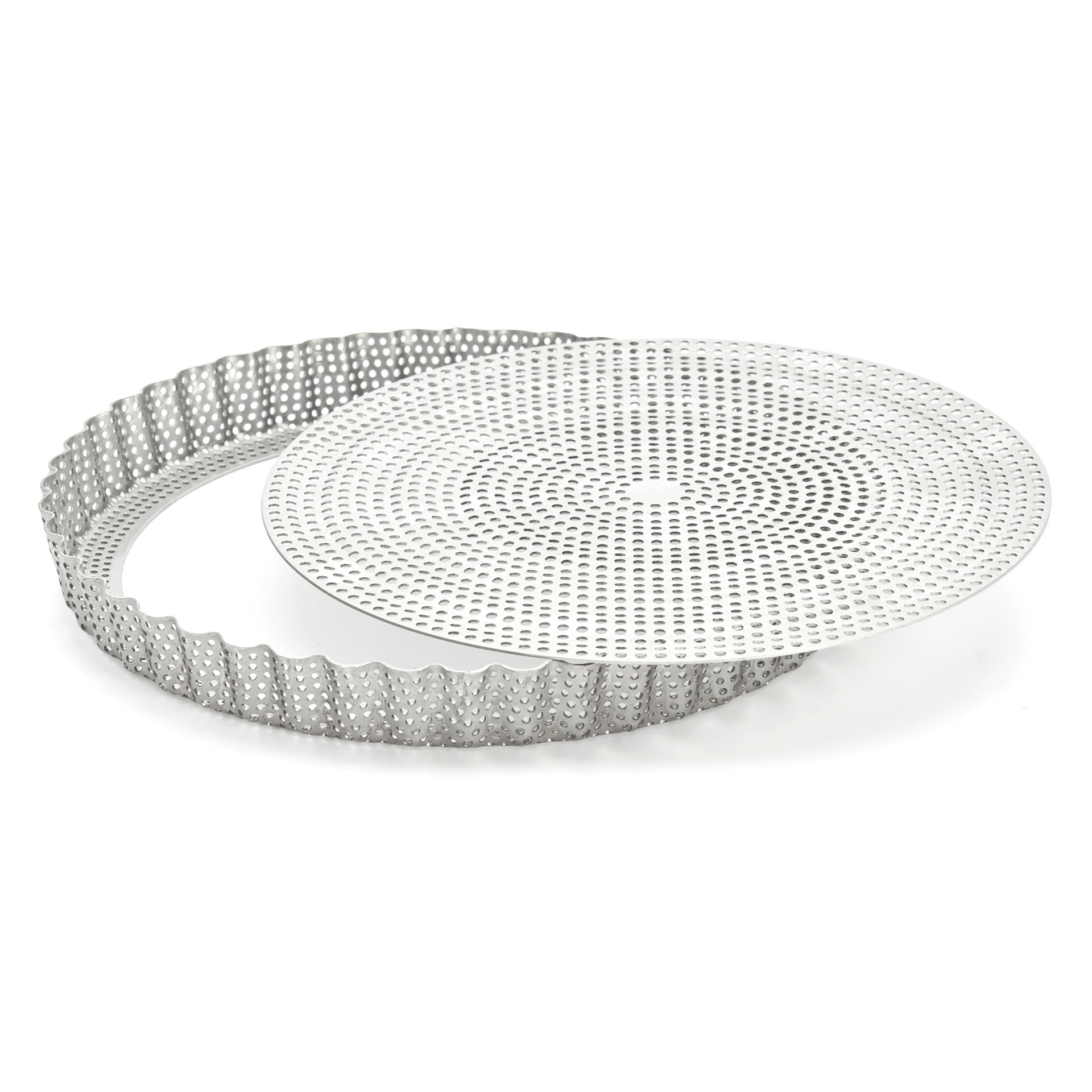 Ultra wytrzymała perforowana forma ze stali nierdzewnej, idealna do słodkich lub wytrawnych tart. Nadaje się do intensywnego, profesjonalnego użytku.
