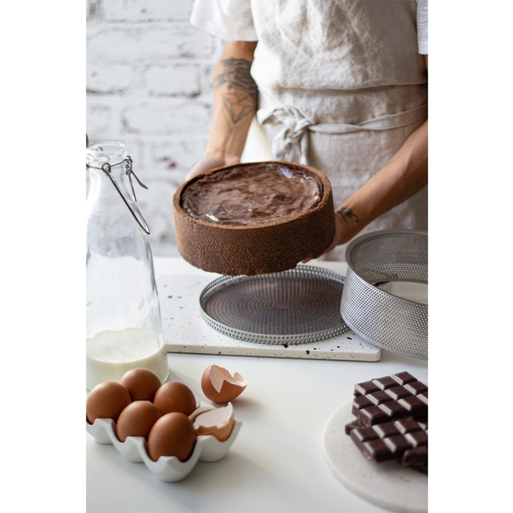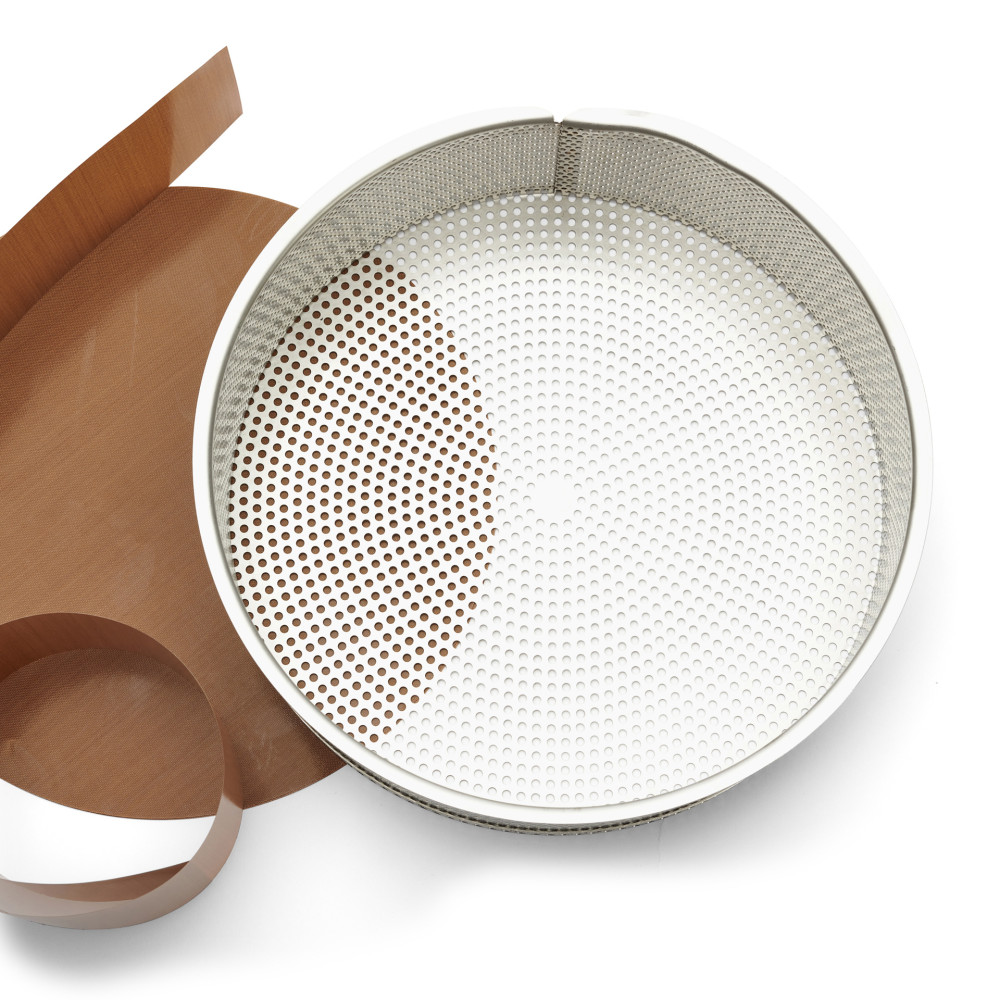 Równomierne, idealne wypieczenie ciast dzięki 2-milimetrowym perforacjom na całej powierzchni formy. Perforowana konstrukcja zapewnia doskonałe przewodzenie ciepła dla szybkiego, równomiernego pieczenia i odprowadzenia pary w celu uzyskania chrupkości wierzchu ciasta.
