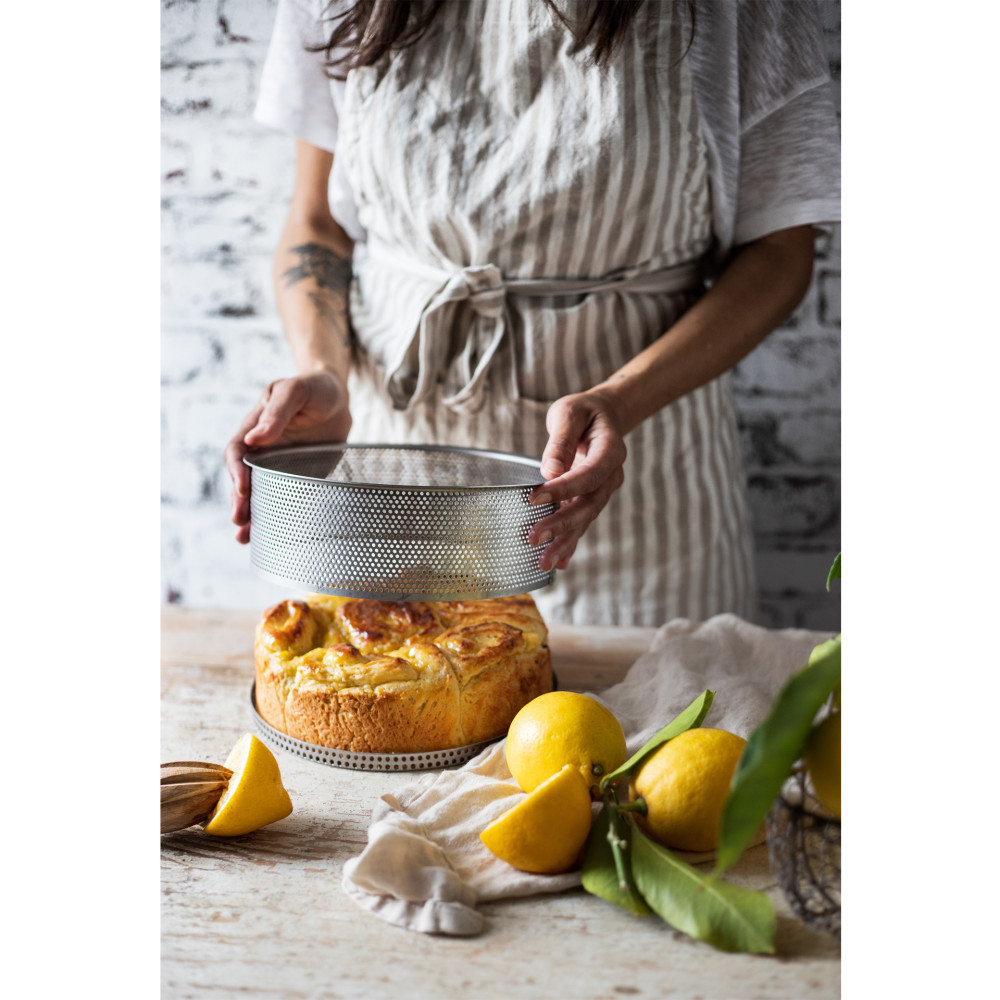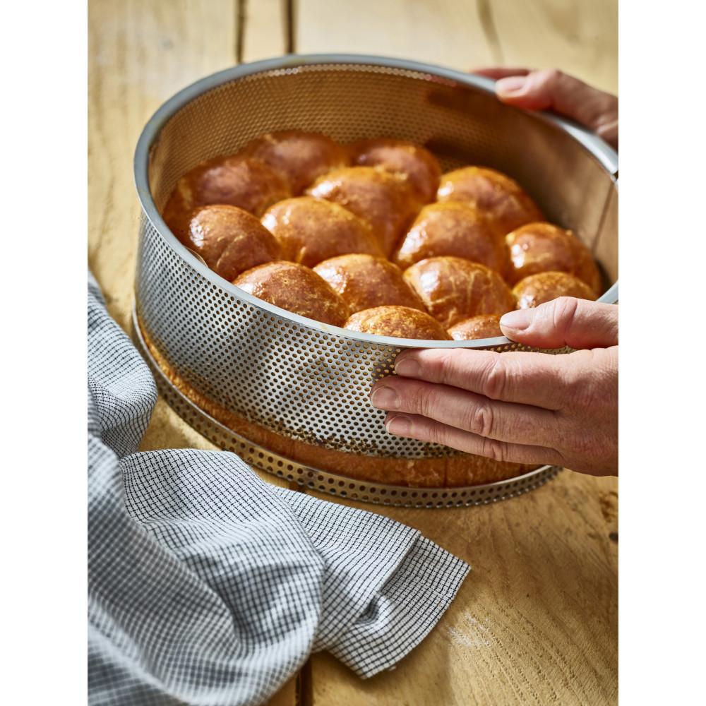Wyjątkowo wytrzymała perforowana forma ze stali nierdzewnej, idealna do sernika, brioszek, biszkoptów i innych ciast. Nadaje się do intensywnego, profesjonalnego użytku.