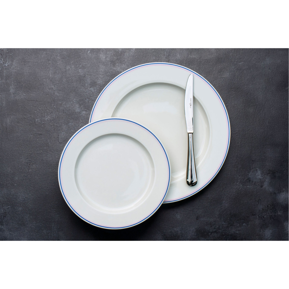 Kolekcja FORTE MIZU II marki Verlo to połączenie klasycznej elegancji z nowoczesnym stylem, wzbogacone charakterystycznym detalem – podwójnym paskiem w odcieniach niebieskim i różowym. Ten minimalistyczny, a zarazem wyrazisty akcent nadaje porcelanie charakteru, wpisując się w aktualne trendy designu, które stawiają na subtelne, ale wyraziste detale i kontrasty.