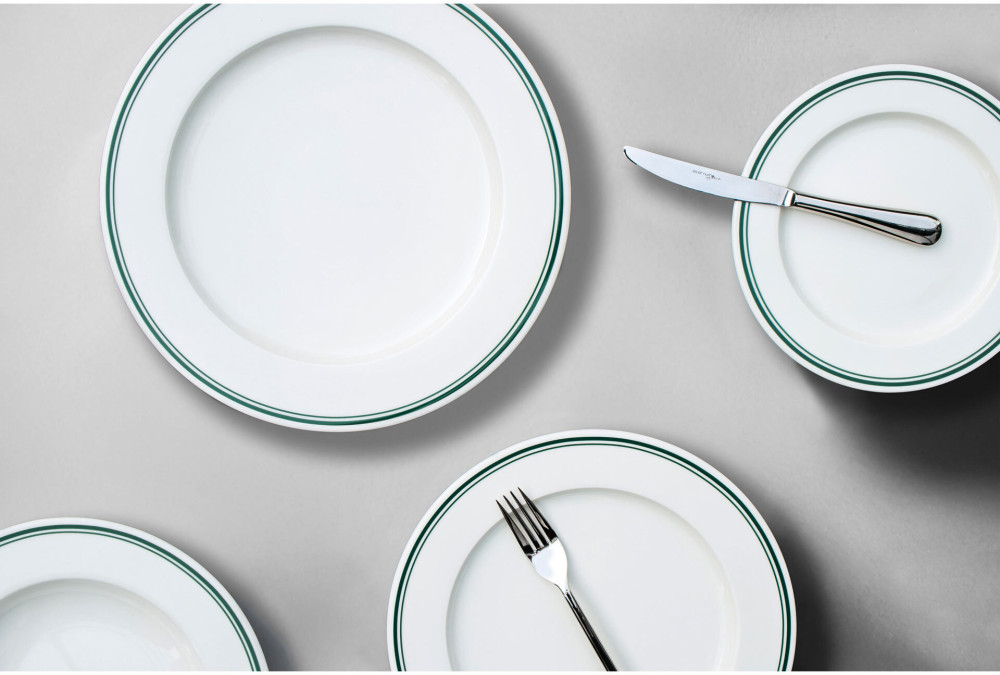 Kolekcja FORTE VIRA Verlo to połączenie klasycznej elegancji z nowoczesnym stylem, podkreślone unikalnym detalem – podwójnym paskiem w intensywnym, zielonym kolorze. Ten minimalistyczny, a zarazem wyrazisty akcent nadaje porcelanie charakteru, wpisując się w aktualne trendy designu, które stawiają na subtelne, ale wyraziste detale i kontrasty.