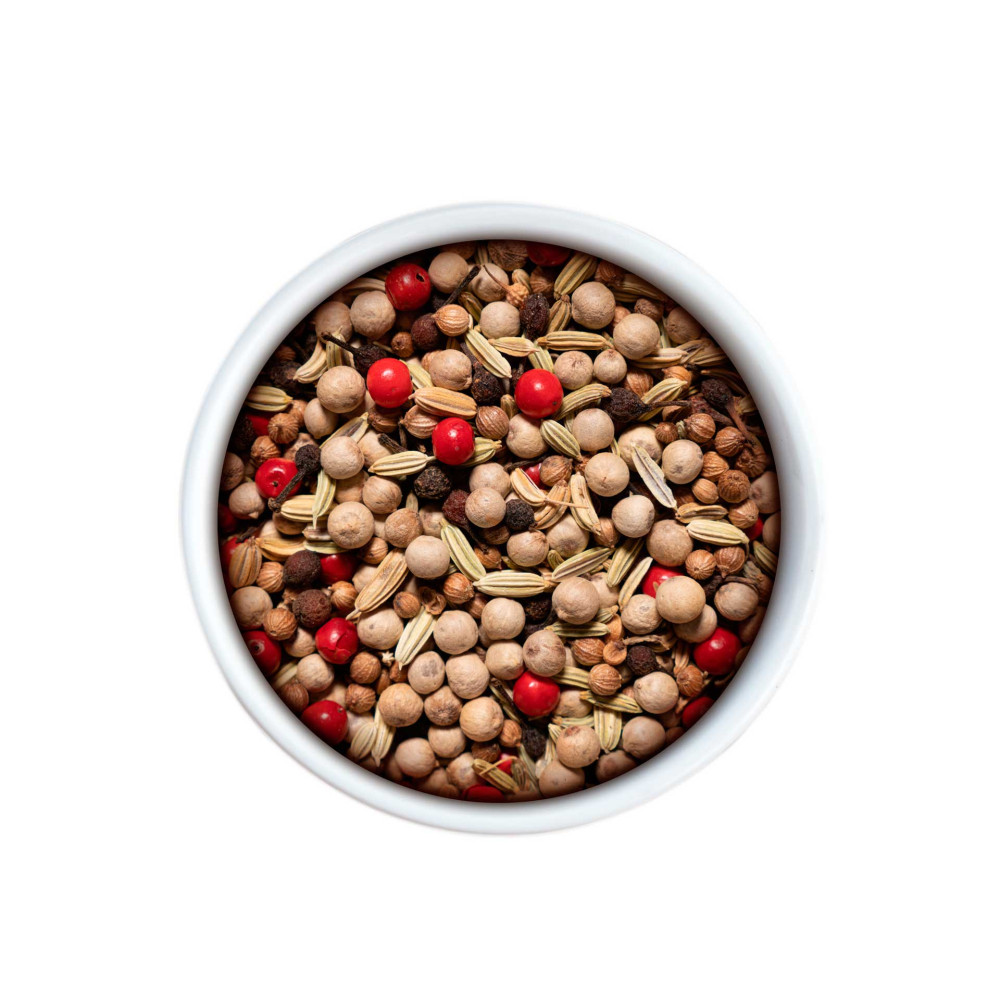 Ta niezwykle aromatyczna mieszanka zawiera biały pieprz, koper włoski i kolendrę, które nadają świeży smak z idealną równowagą mocy i finezji. Doskonały do ryb i owoców morza, ale także odpowiedni do lekkich sałatek i dań warzywnych.