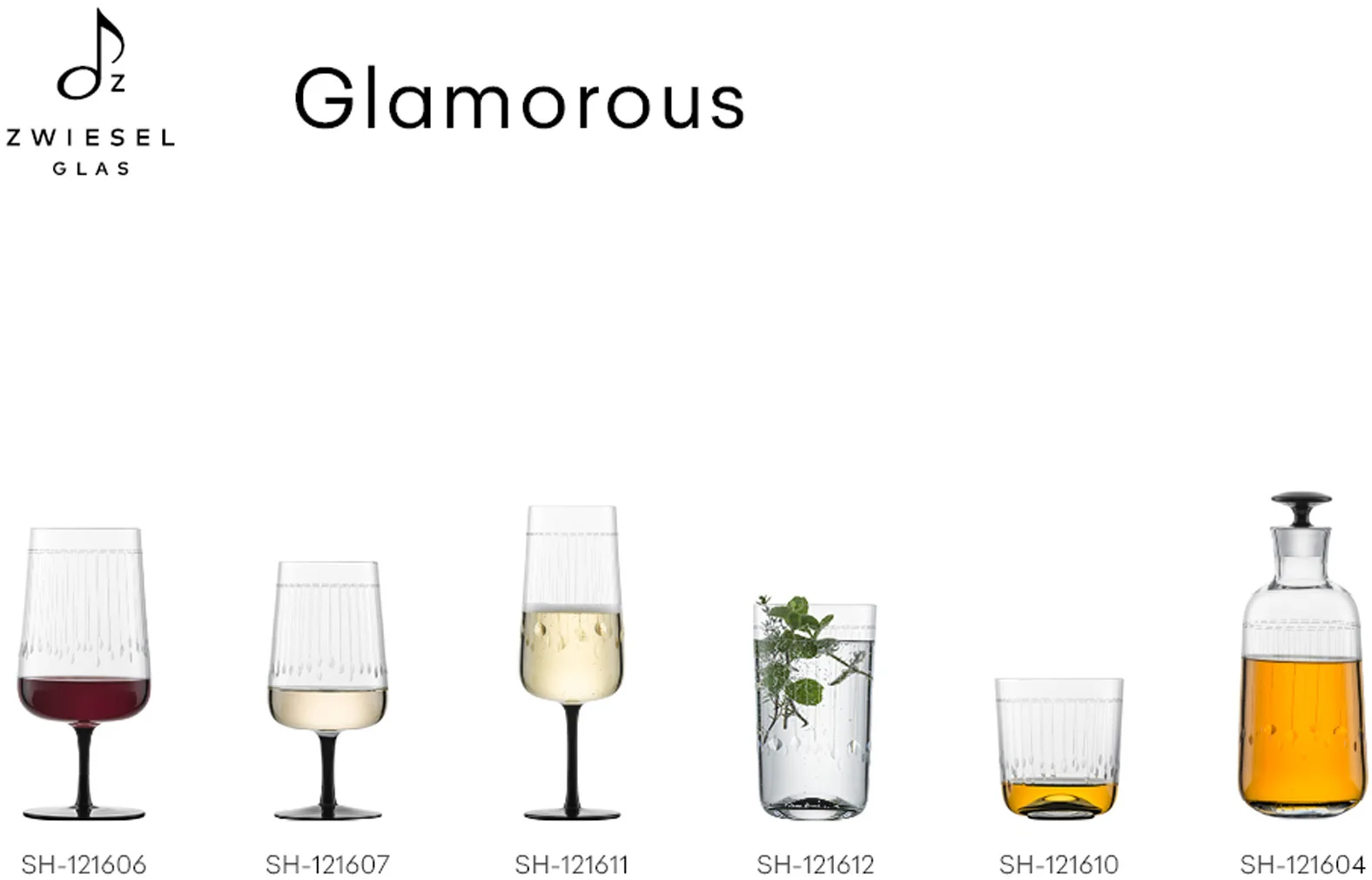 Mistrzowskie wykonanie, charakterystyczne żłobienie i piękne połączenie koloru czarnej nóżki i kryształowego szkła sprawia, że ta ręcznie wykonana kolekcja jest idealnym wyborem na specjalne okazje. Swym charakterem nawiązuje do lat 20. XX wieku i designu Art Déco.