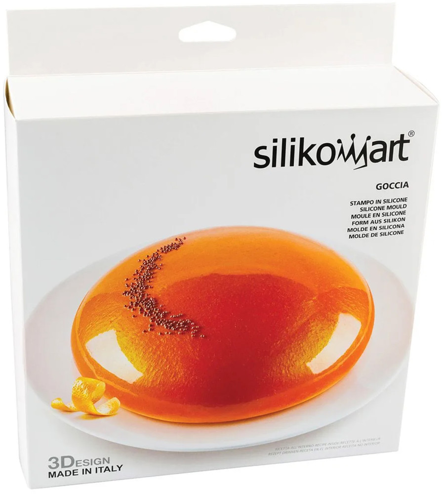 Forma Goccia z linii 3Design firmy Silikomart gwarantuje ona doskonałe rezultaty nie tylko w wersji semifreddo i mousse, ale także w wersji do wypiekania. Innowacyjna technologia 3D marki Silikomart sprawia, że wyjmowanie deserów z formy jest szybkie i łatwe, co pozwala osiągnąć perfekcyjne efekty. Może być wykorzystywana do przygotowywania różnych rodzajów deserów, w tym ciast i wielu innych. Klasyczny, okrągły kształt daje wiele możliwości w tworzeniu kreatywnych deserów.