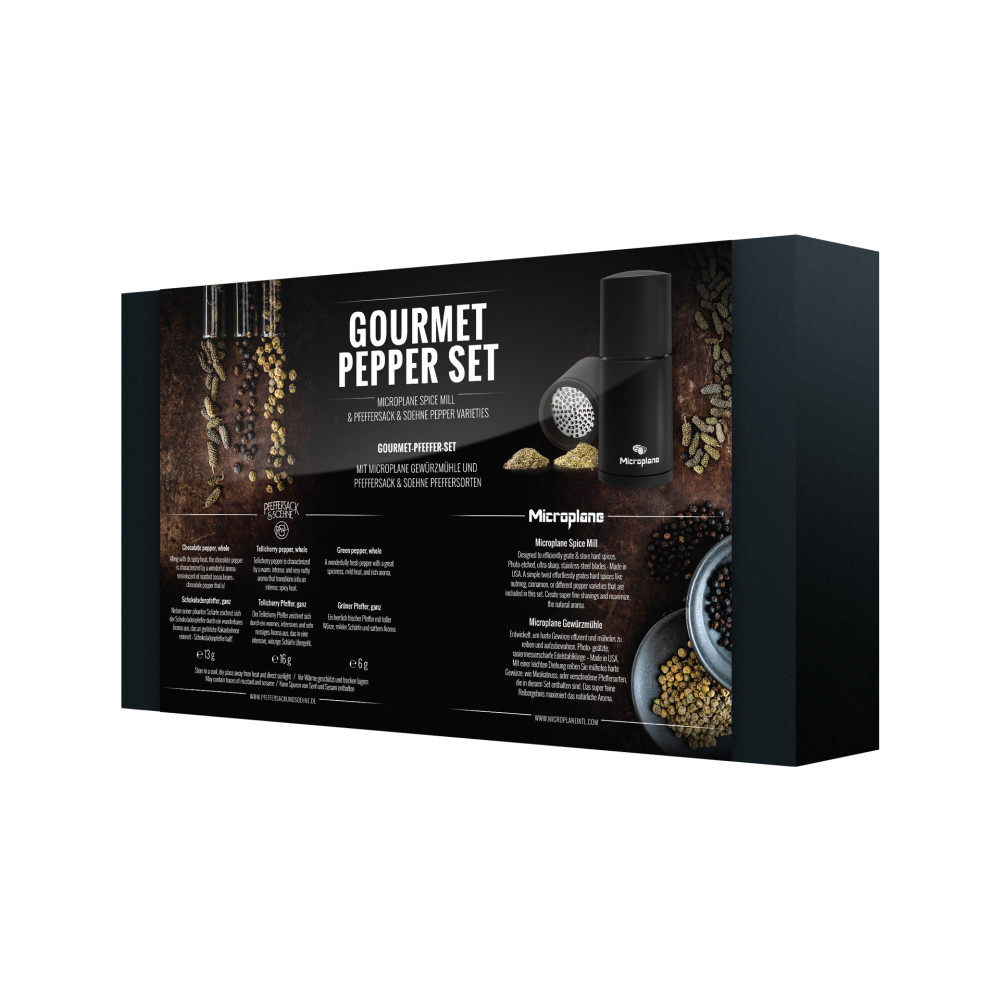 GOURMET Zestaw młynek i 3 rodzaje pieprzu / MICROPLANE
