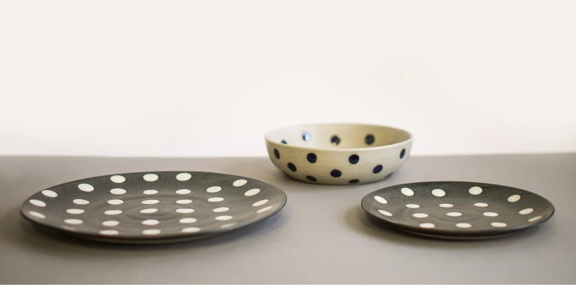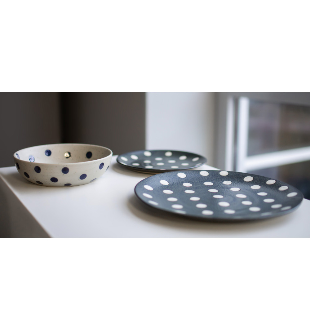 Grochy o nieregularnych kształtach (średnica około 1,5 cm) przyciągają uwagę i nadają każdemu elementowi wyjątkowego charakteru. Ich szkliwienie dodaje elegancji i wyjątkowości każdemu naczyniu.