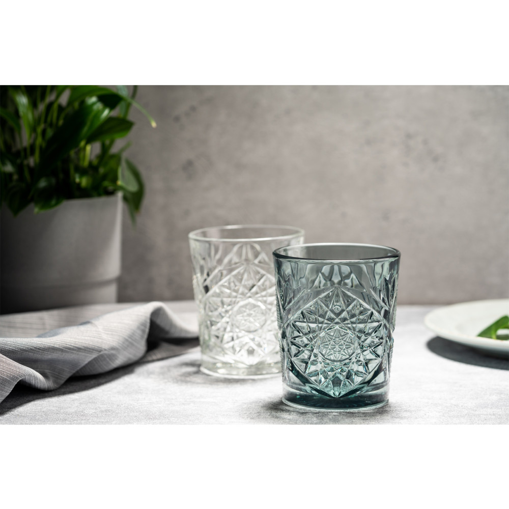 Kolekcja szkła Hobstar to połączenie ponadczasowego stylu z funkcjonalnością. Szklanki, kieliszki są nie tylko piękne wizualnie, ale również wyjątkowo wytrzymałe. Solidne, grube szkło o wyglądzie szkła kryształowego oraz liczne nacięcia w szkle pięknie załamujące światło doskonale podkreślą walory wizualne zarówno napojów bezalkoholowych, jak i koktajli oraz wody.