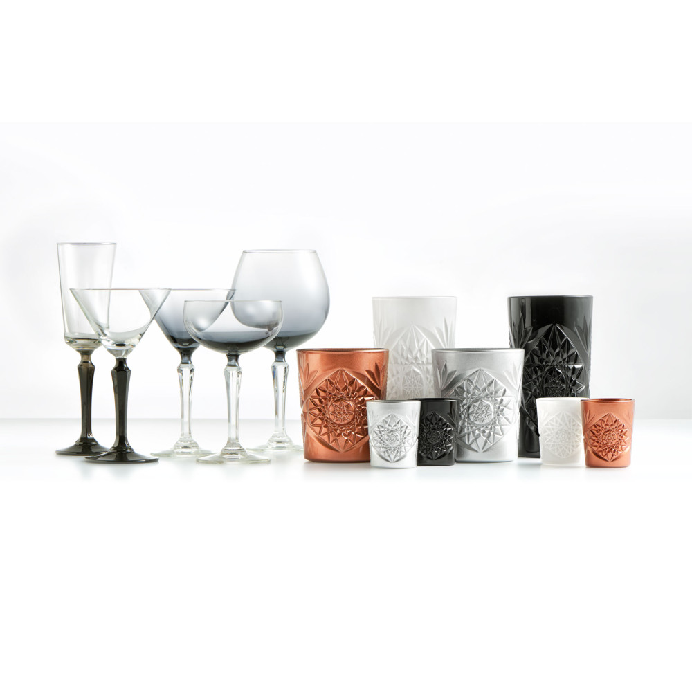 Kolekcja szkła Hobstar to połączenie ponadczasowego stylu z funkcjonalnością. Szklanki, kieliszki są nie tylko piękne wizualnie, ale również wyjątkowo wytrzymałe. Solidne, grube szkło o wyglądzie szkła kryształowego oraz liczne nacięcia w szkle pięknie załamujące światło doskonale podkreślą walory wizualne zarówno napojów bezalkoholowych, jak i koktajli oraz wody.