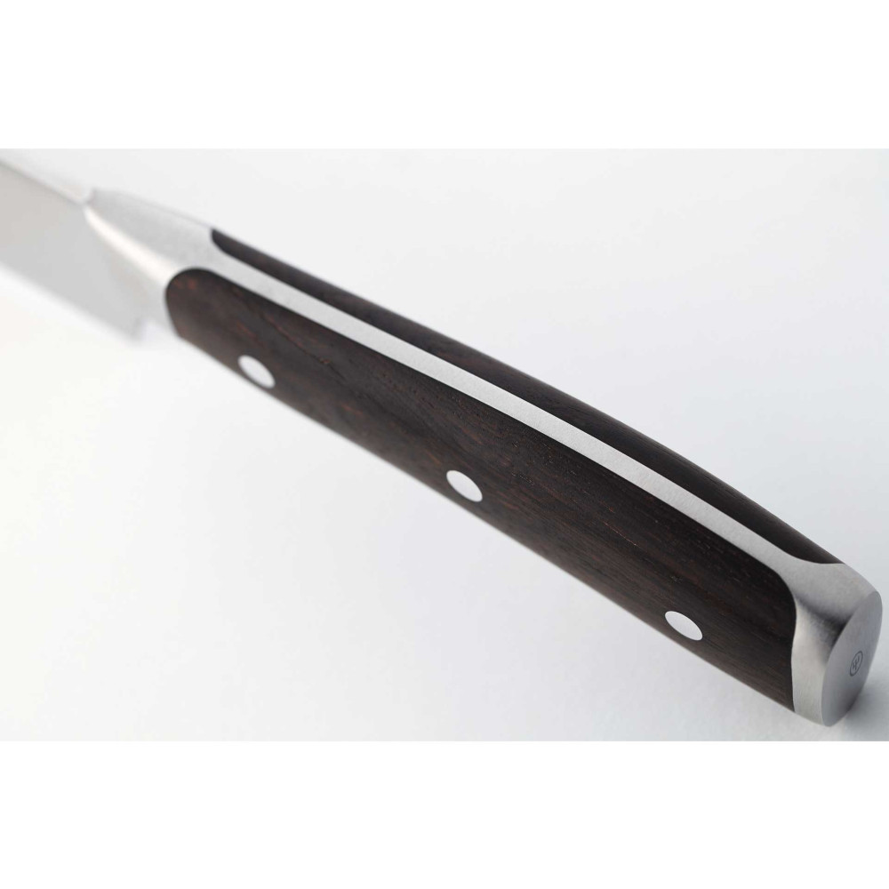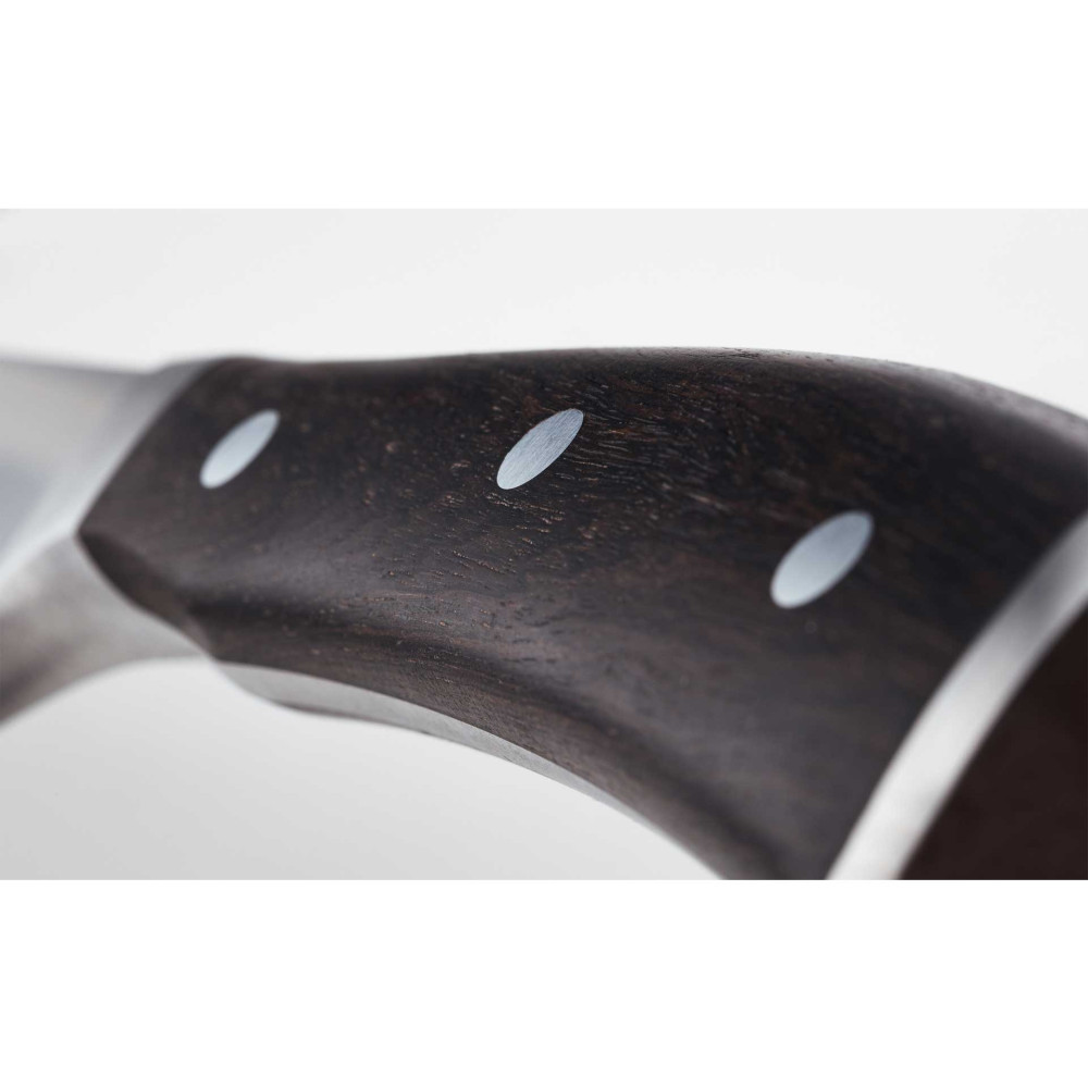 Potrójnie nitowana rękojeść wykonana jest ze specjalnie wyselekcjonowanej odmiany afrykańskiego czarnego drzewa Grenadill, uchodzącego za jedno z najtwardszych na świecie. Rysunek każdego kawałka drewna jest niepowtarzalny i taki staje się każdy z egzemplarzy noża IKON. Ponadto dzięki wodoodporności i walorom higienicznym świetnie nadaje się do zastosowań kuchennych.