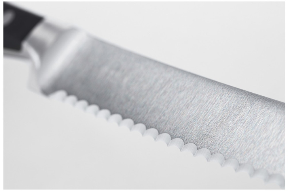 Nóż do chleba dedykowany jest do krojenia wszelkiego rodzaju pieczywa świeżego i chrupkiego. Dzięki ząbkowanemu ostrzu uzyskujemy kromki o pożądanej grubości bez konieczności ściskania i miażdżenia pieczywa. Sprawdzi się również podczas porcjowania ciast i tortów.