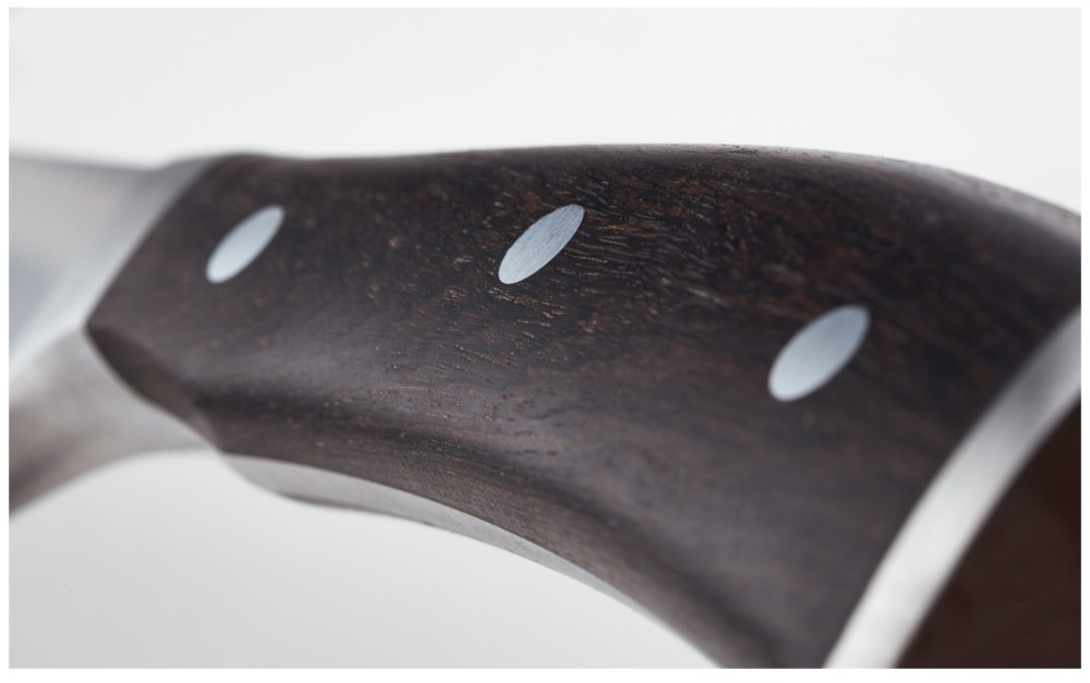 Potrójnie nitowana rękojeść wykonana jest ze specjalnie wyselekcjonowanej odmiany afrykańskiego czarnego drzewa Grenadill, uchodzącego za jedno z najtwardszych na świecie. Rysunek każdego kawałka drewna jest niepowtarzalny i taki staje się każdy z egzemplarzy noża IKON. Ponadto dzięki wodoodporności i walorom higienicznym świetnie nadaje się do zastosowań kuchennych.