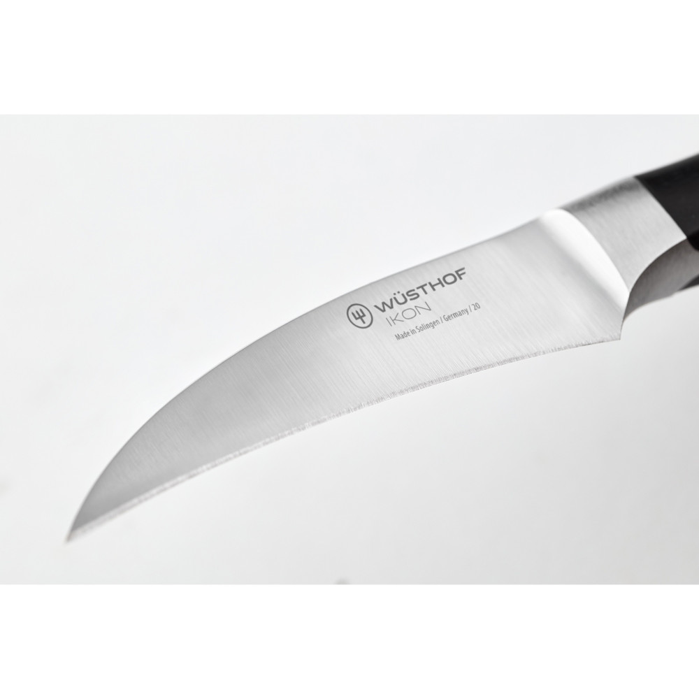 Ostrza wykuwane są z jednego kawałka wysokiej jakości stali wysokowęglowej, chromowo-molibdenowo-wanadowej charakteryzującej się wytrzymałością i trwałością. Na cały proces wykonania noża kutego składa się ponad 55 czynności dzielonych między zautomatyzowane linie produkcyjne i kunszt ręcznego wykończenia. Finalnie wykańczane ręcznie przez specjalistów WÜSTHOF noże zyskują najwyższą ostrość sprawiającą, że cięcie nożami IKON jest łatwe, szybkie i precyzyjne. Są to najostrzejsze noże w ofercie marki.