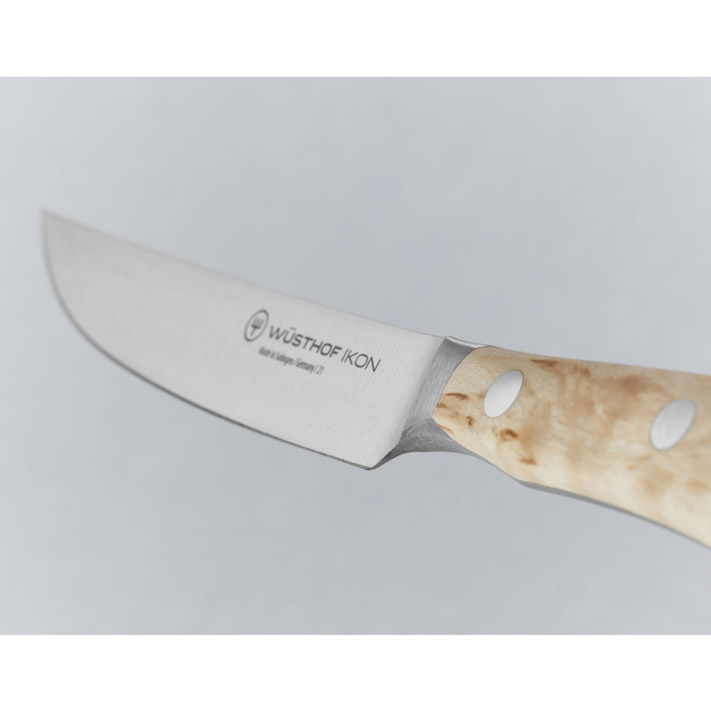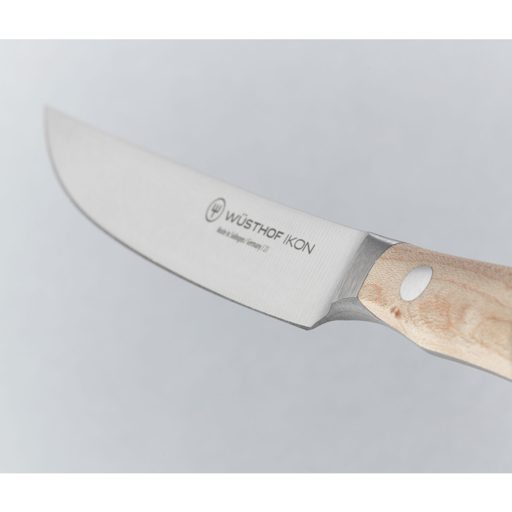 Ostrza wykuwane są z jednego kawałka wysokiej jakości stali wysokowęglowej, chromowo-molibdenowo-wanadowej charakteryzującej się wytrzymałością i trwałością. Na cały proces wykonania noża kutego składa się ponad 55 czynności dzielonych między zautomatyzowane linie produkcyjne i kunszt ręcznego wykończenia. Finalnie wykańczane ręcznie przez specjalistów WÜSTHOF noże zyskują najwyższą ostrość sprawiającą, że cięcie nożami IKON jest łatwe, szybkie i precyzyjne. Są to najostrzejsze noże w ofercie marki.