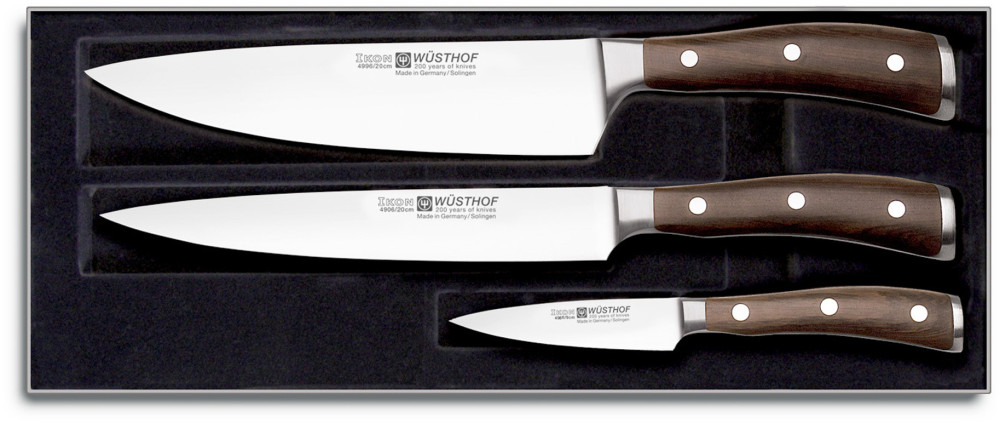 IKON Zestaw - Nóż szefa 20 cm, kuchenny 20 cm i do warzyw 9 cm / WÜSTHOF