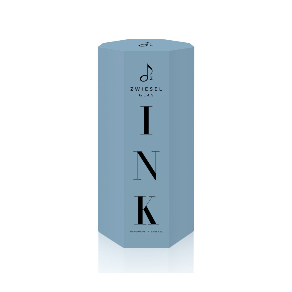 Kolekcja INK to połączenie klasyki z wyrafinowanym designem. Piękna, klasyczna czasza kieliszków, osadzona na barwionej podstawie i nóżce, są wyraźnym nawiązaniem do stylu lat 70-tych. W misternym procesie produkcji opartym na tradycyjnych technikach rzemieślniczych w podstawach kieliszków powstają piękne gradienty kolorów przypominające akwarele. Wybarwienie szkła w nóżce kieliszka jest niezwykle subtelne – wybarwiona została tylko jej wewnętrzna część. Kolorowa „nić” wewnątrz nóżki oraz mocniejsze wybarwienie podstawy daje niezwykły efekt wizualny.