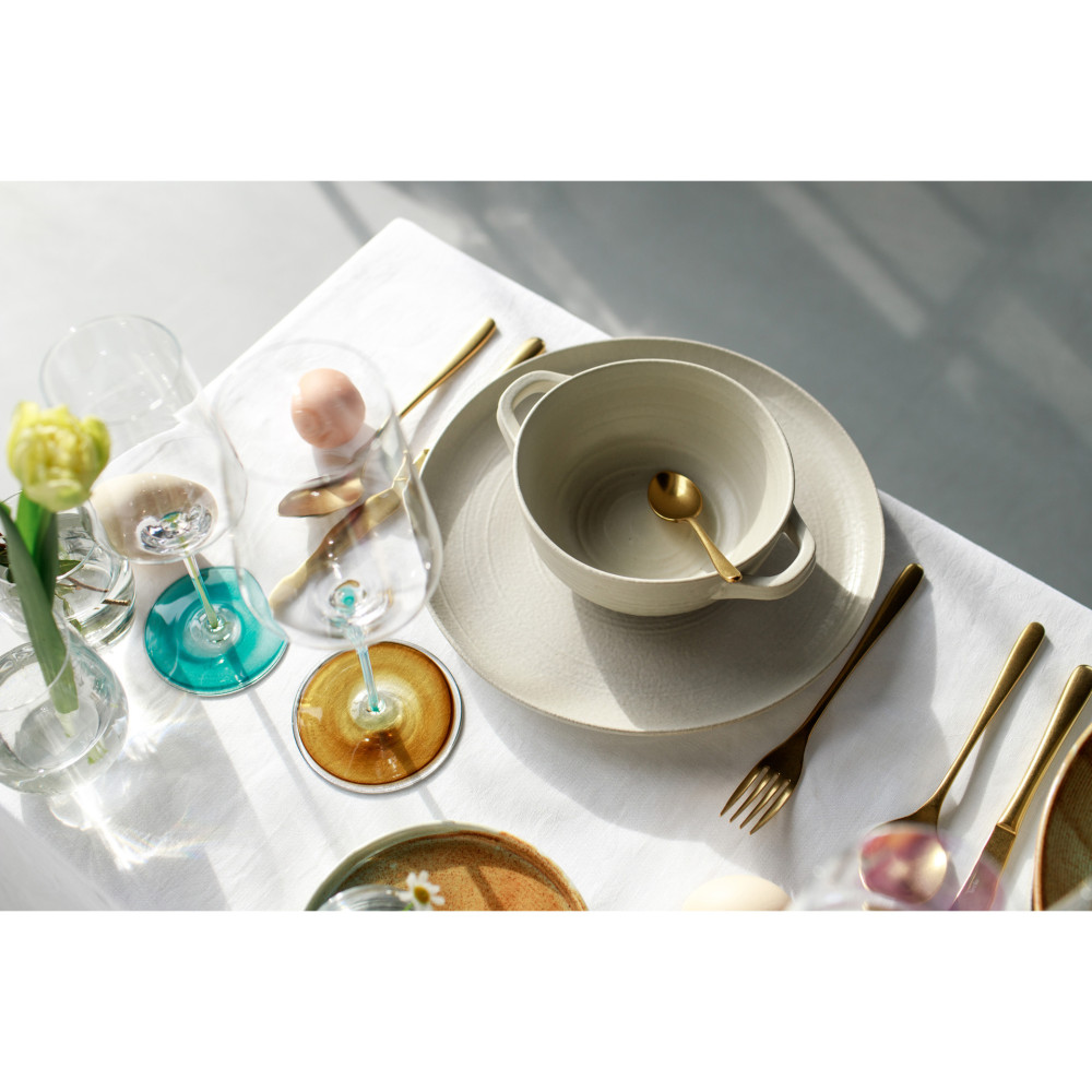 Kolekcja INK to połączenie klasyki z wyrafinowanym designem. Piękna, klasyczna czasza kieliszków, osadzona na barwionej podstawie i nóżce, są wyraźnym nawiązaniem do stylu lat 70-tych. W misternym procesie produkcji opartym na tradycyjnych technikach rzemieślniczych w podstawach kieliszków powstają piękne gradienty kolorów przypominające akwarele. Wybarwienie szkła w nóżce kieliszka jest niezwykle subtelne – wybarwiona została tylko jej wewnętrzna część. Kolorowa „nić” wewnątrz nóżki oraz mocniejsze wybarwienie podstawy daje niezwykły efekt wizualny.