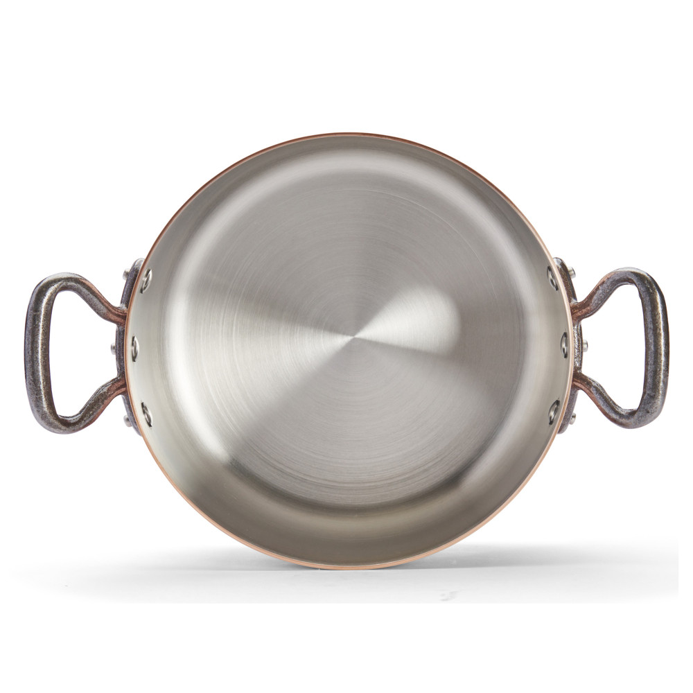 Naturalne patynowanie. Nietuzinkowy wygląd miedzianych naczyń, z czasem się zmienia. Miedź utlenia się i zmienia barwę – jest to naturalny proces patynowania. Ciepła barwa „brzoskwiniowej miedzi” nabiera z czasem ciemniejszy odcień, co ma swój urok. Jeżeli chcesz zachować jasny odcień miedzi oraz pozbyć się wszelkiego rodzaju zacieków, przebarwień powstałych podczas gotowania, użyj pasty do czyszczenia miedzi marki de Buyer.