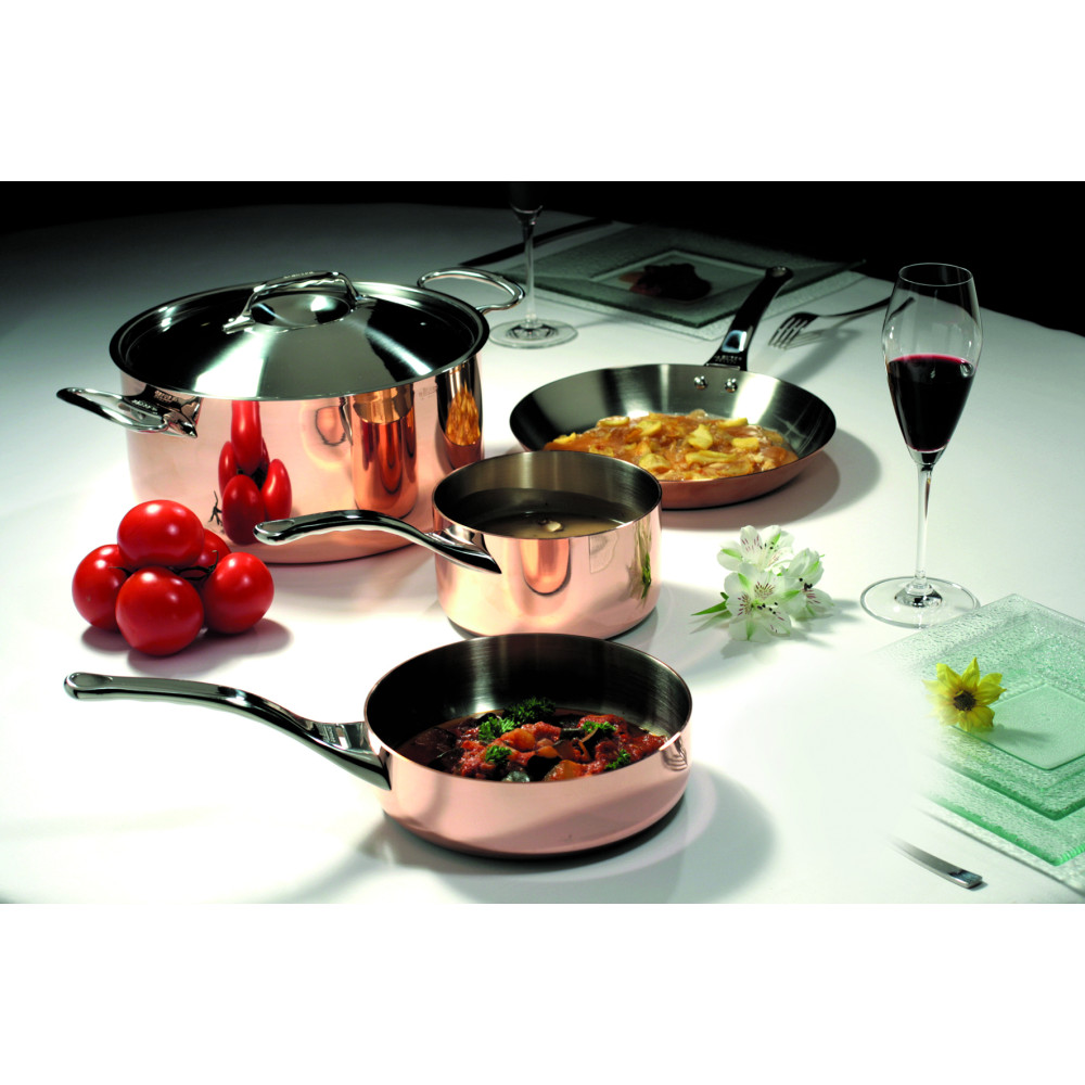 Patelnie francuskiej firmy są wykonane w 90% z miedzi i w 10% ze stali nierdzewnej (wnętrze naczynia). Te naczynia posiadają szereg zalet. Przede wszystkim równomiernie i błyskawicznie się nagrzewają. Dzięki temu ciepło nie ogranicza się jedynie do dna, ale rozprzestrzenia się także przez powierzchnię całego naczynia, włącznie ze ściankami, co znacząco zmniejsza ryzyko przypalenia potraw. Potrawy smażą się równomiernie i szybko. Wewnętrzna warstwa tych naczyń jest wykonana ze stali nierdzewnej, która jest neutralna w kontakcie z żywnością. Stal nie wywołuje uczuleń ani nie wchodzi w reakcję z jedzeniem, co sprawia, że smażone potrawy są w pełni bezpieczne dla zdrowia. Brzeg patelni typu Lyonnaise, umożliwia łatwe zsuwanie się jedzenia do naczynia. Idealna do smażenia, przyrumieniania i flambirowania.