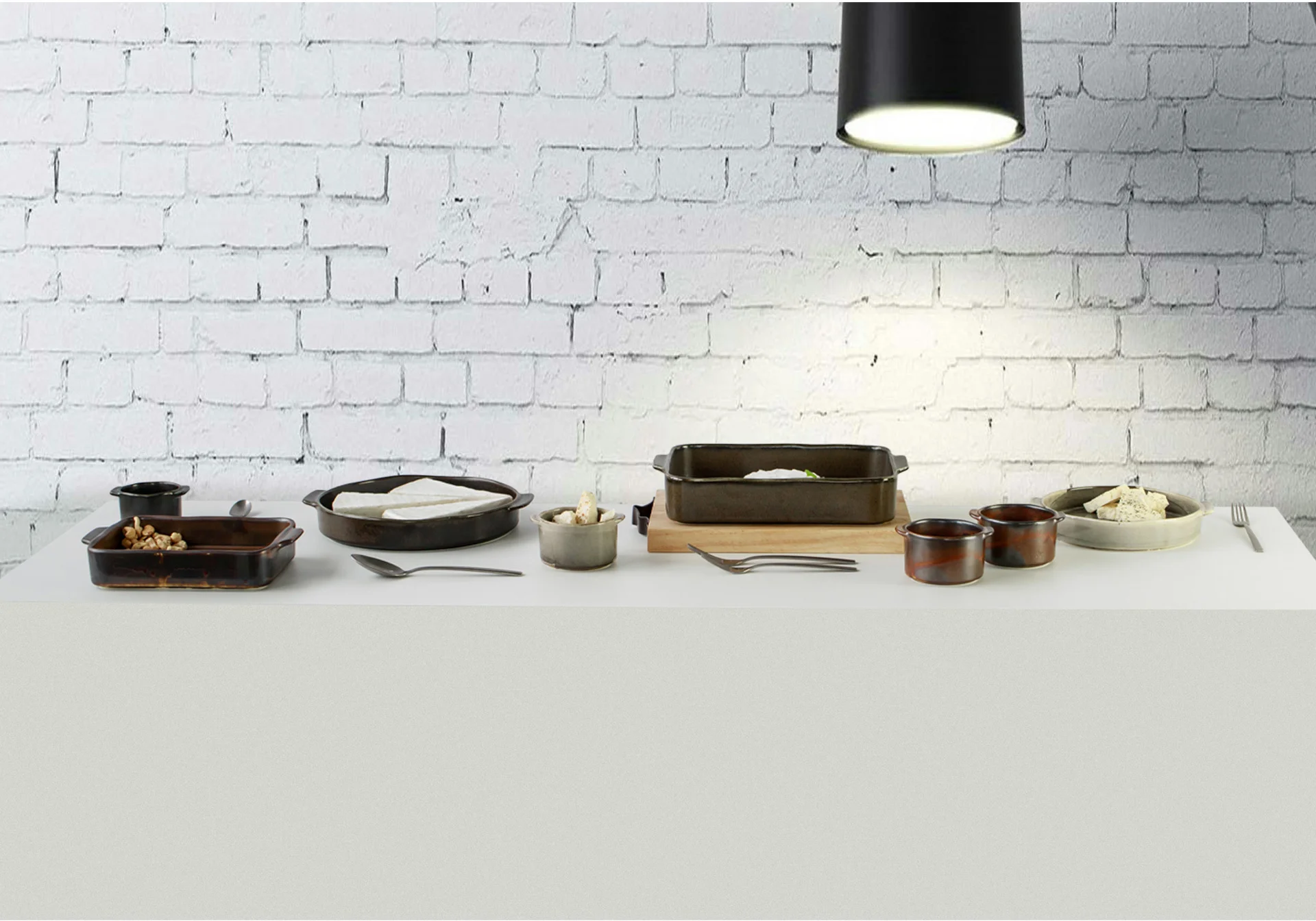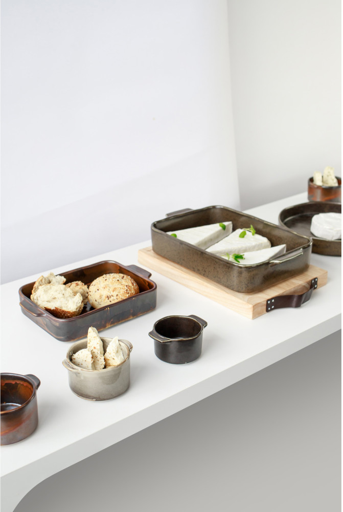 Inspiracją w tworzeniu tej kolekcji było rzemieślnicze wytwarzanie naczyń i odniesienie do jej naturalnych walorów. Ciężka, solidna forma tych naczyń oraz ciemna kolorystyka pięknie skomponuje się zarówno w minimalistycznej aranżacji kuchni czy jadali, jak również w bardziej rustykalnych wnętrzach. Subtelne, półmatowe wykończenie naczyń wspaniale podkreśla lekko nakrapianą glazurę i przenikanie się barw.