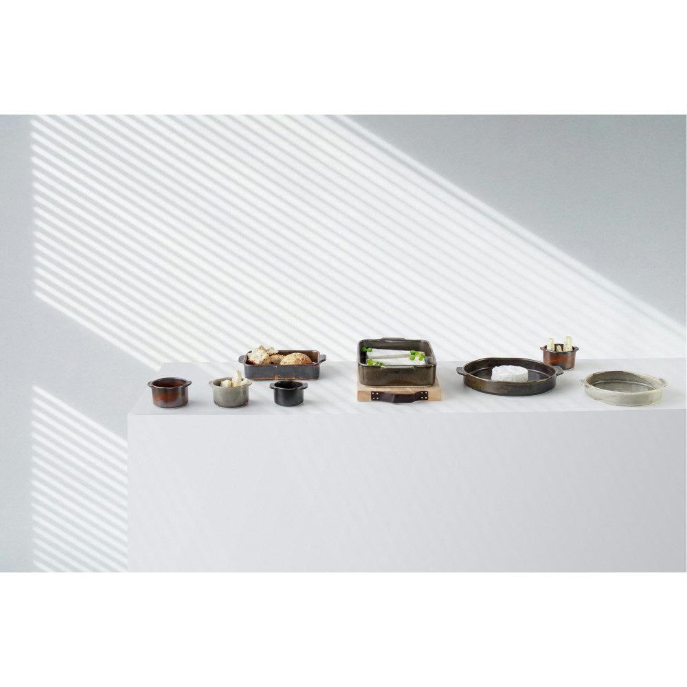 Inspiracją w tworzeniu tej kolekcji było rzemieślnicze wytwarzanie naczyń i odniesienie do jej naturalnych walorów. Ciężka, solidna forma tych naczyń oraz ciemna kolorystyka pięknie skomponuje się zarówno w minimalistycznej aranżacji kuchni czy jadali, jak również w bardziej rustykalnych wnętrzach. Subtelne, półmatowe wykończenie naczyń wspaniale podkreśla lekko nakrapianą glazurę i przenikanie się barw.