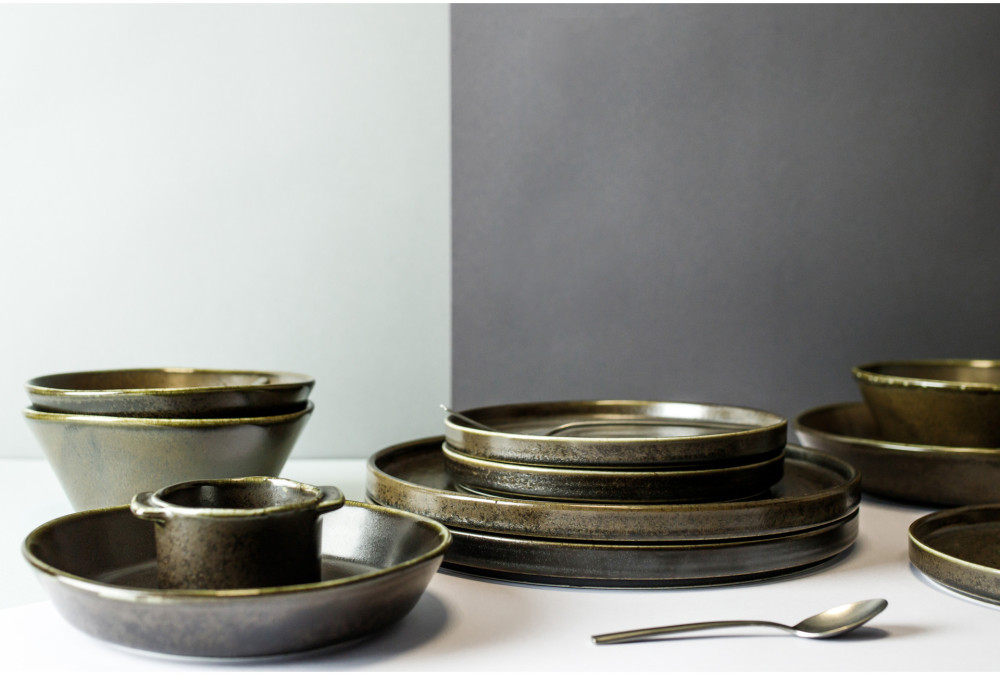 Inspiracją w tworzeniu tej kolekcji było rzemieślnicze wytwarzanie naczyń i odniesienie do jej naturalnych walorów. Ciężka, solidna forma tych naczyń oraz ciemna kolorystyka pięknie skomponuje się zarówno w minimalistycznej aranżacji kuchni czy jadali, jak również w bardziej rustykalnych wnętrzach. Subtelne, półmatowe wykończenie naczyń wspaniale podkreśla lekko nakrapianą glazurę i przenikanie się barw.