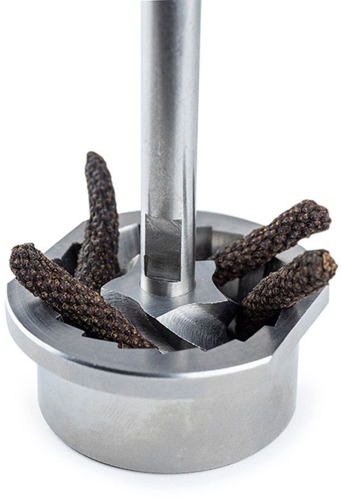 Młynek ISEN został specjalnie zaprojektowany do mielenia długich i dużych ziaren pieprzu (o średnicy powyżej 6 mm) oraz suszonych przypraw, takich jak kardamon, anyż, goździki, kminek, koper włoski, kolendra czy fasolka tonka. Młynek posiada precyzyjną regulację mielenia, dzięki której możesz wybrać żądaną grubość mielenia przyprawy. Mechanizm mielący, który jest dopasowany do wielkości i kształtu długich i dużych ziaren pieprzu, tnie je zamiast zgniatać. Dzięki temu uwydatnione są pełne aromaty pieprzu. Kolekcja ISEN to połączenie tradycji z nowoczesnością. Eleganckie połączenie drewna bukowego z polerowaną stalą nawiązuje do stylu retro.