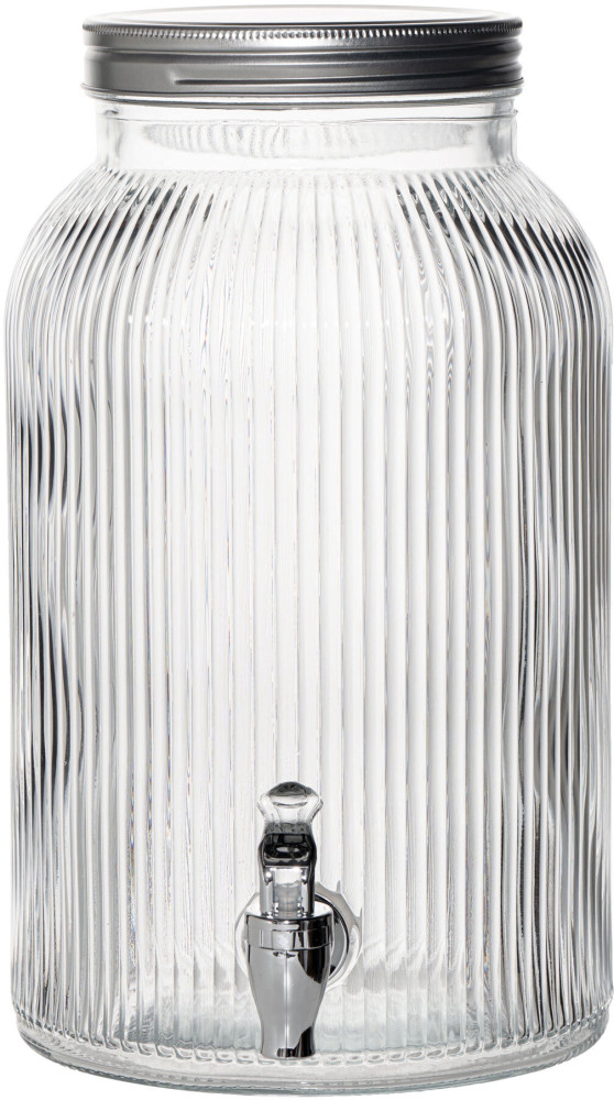 Dyspenser do napojów JAR marki Verlo łączy klasyczny styl i praktyczne rozwiązania w eleganckiej formie. Wykonany z ryflowanego szkła, prezentuje się wyjątkowo efektownie, a szeroki wlew umożliwia łatwe napełnianie i dokładne czyszczenie. Praktyczny kranik z tworzywa imitującego stal zapewnia wygodne nalewanie napojów, natomiast metalowa pokrywka skutecznie chroni zawartość słoja. To naczynie, które doskonale sprawdzi się podczas domowych przyjęć, a także w profesjonalnej branży HoReCa – zawsze tam, gdzie liczy się wygoda i styl.