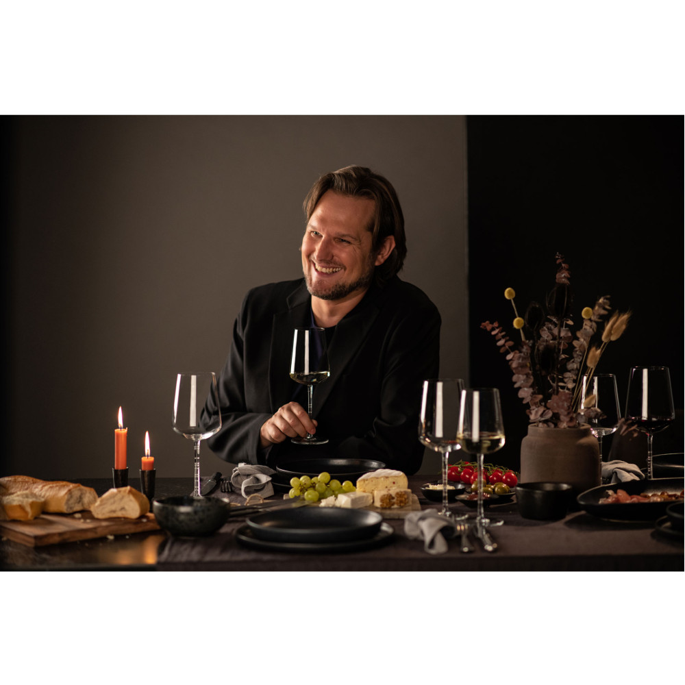 Niemiecki designer, który podbił również Paryż, poprzez zmysłowe akcenty i stylowy design zabiera nas w podróż w czasie przez historię marki. Pięcioczęściowa seria Journey zachwyca efektownymi nóżkami. Delikatne żłobienia wizualizują kamienie milowe 150-letniej historii marki ZWIESEL GLAS. Przeszłość, teraźniejszość i przyszłość symbolicznie zawarta została w uchwycie każdego kieliszka.