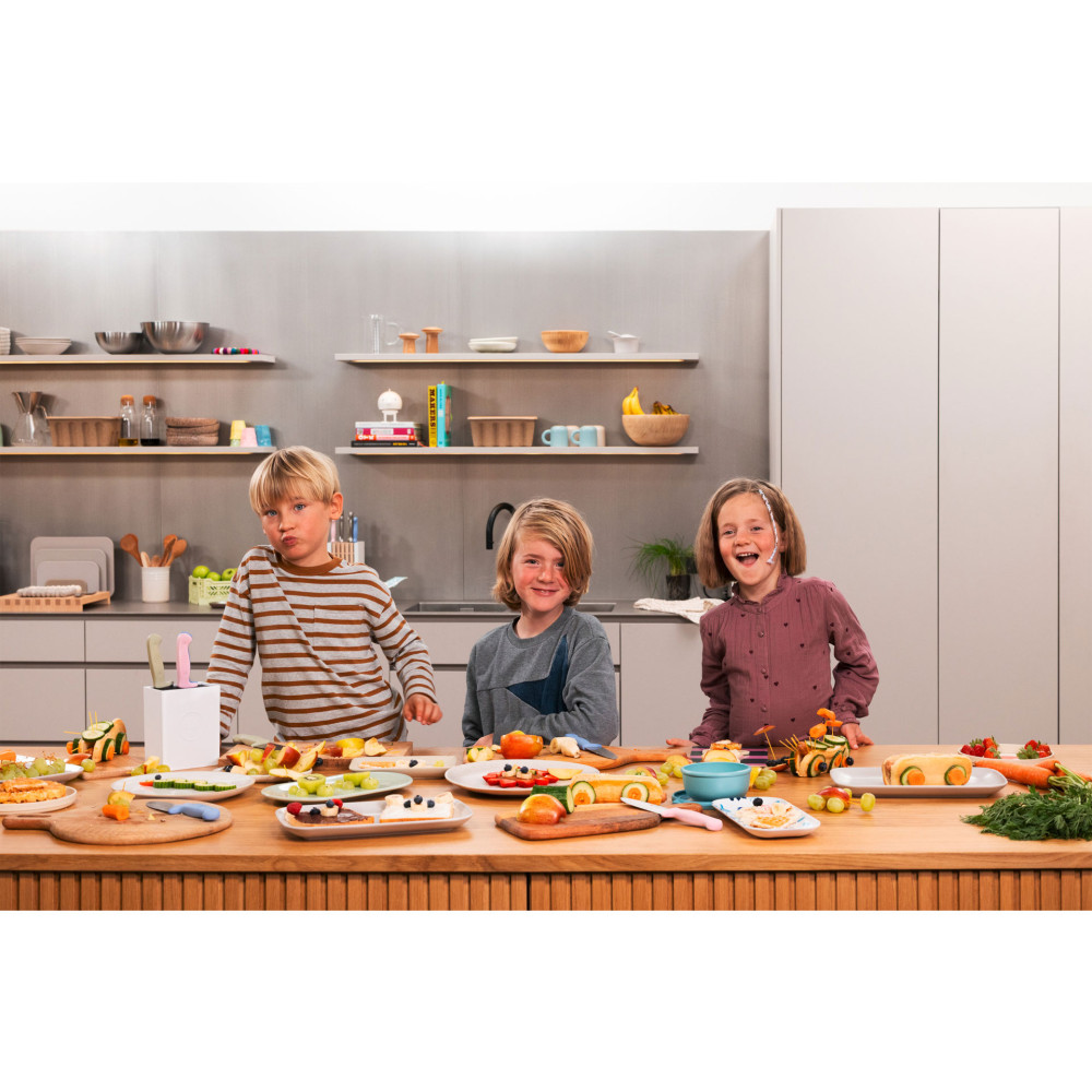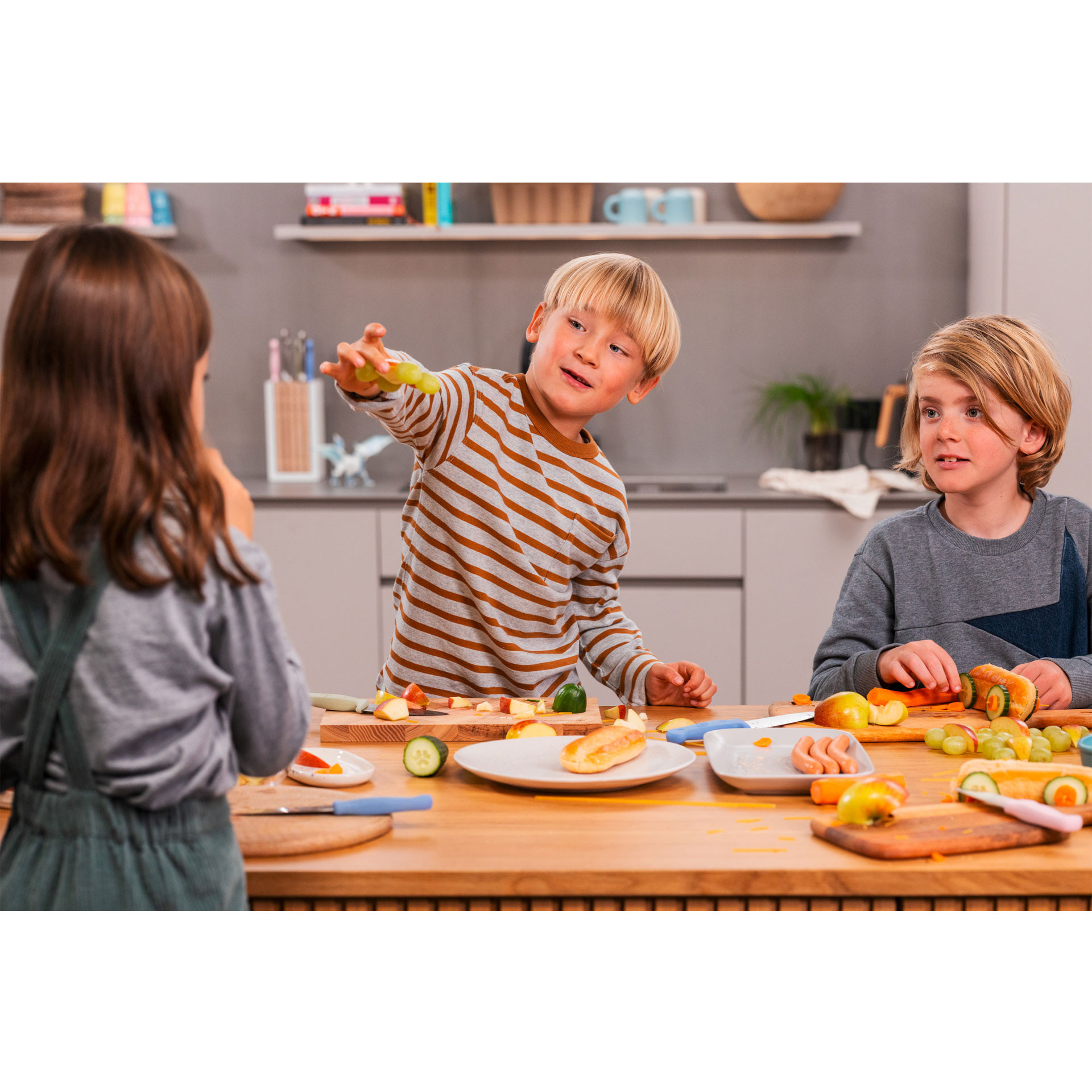 Zachwyca zarówno funkcjonalnością, jak i wyglądem: kolorowa rękojeść, zaokrąglona końcówka, osłona na palce i ergonomiczny uchwyt tworzą idealny nóż do nauki krojenia dla dzieci. Wspólne gotowanie staje się okazją do rozwoju motoryki, koncentracji i kreatywności, a każda chwila spędzona w kuchni zamienia się w przygodę oraz budowanie wspólnych wspomnień.