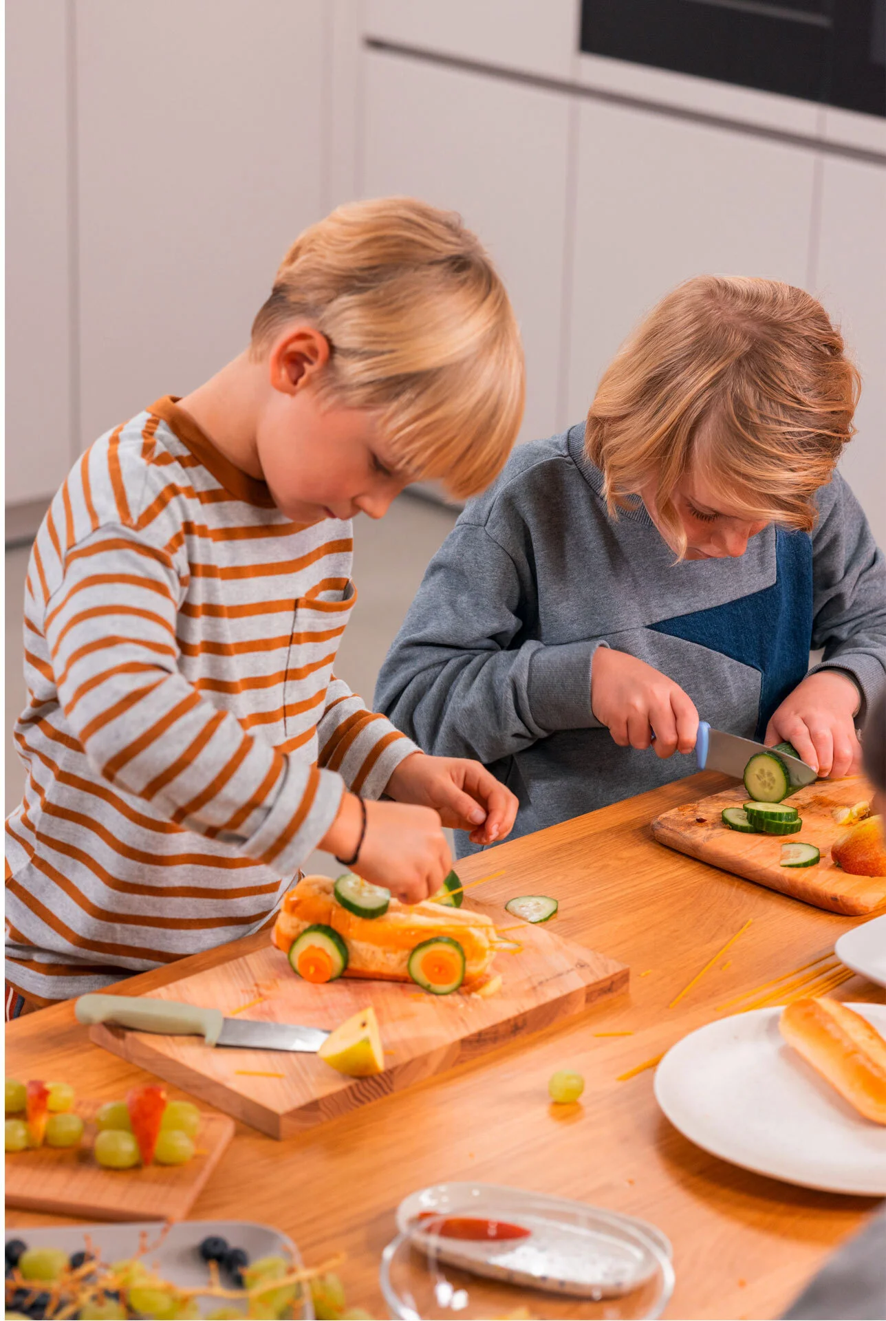 Zachwyca zarówno funkcjonalnością, jak i wyglądem: kolorowa rękojeść, zaokrąglona końcówka, osłona na palce i ergonomiczny uchwyt tworzą idealny nóż do nauki krojenia dla dzieci. Wspólne gotowanie staje się okazją do rozwoju motoryki, koncentracji i kreatywności, a każda chwila spędzona w kuchni zamienia się w przygodę oraz budowanie wspólnych wspomnień.