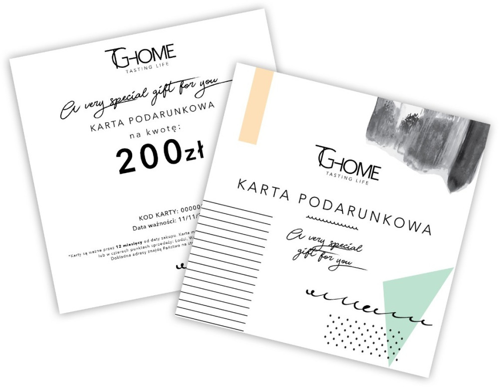 - karta może być realizowana w sklepie tghome.pl lub w stacjonarnych, partnerskich showroomach Tom-Gast, gdzie możesz obejrzeć produkty, zainspirować się i dokonać wyboru