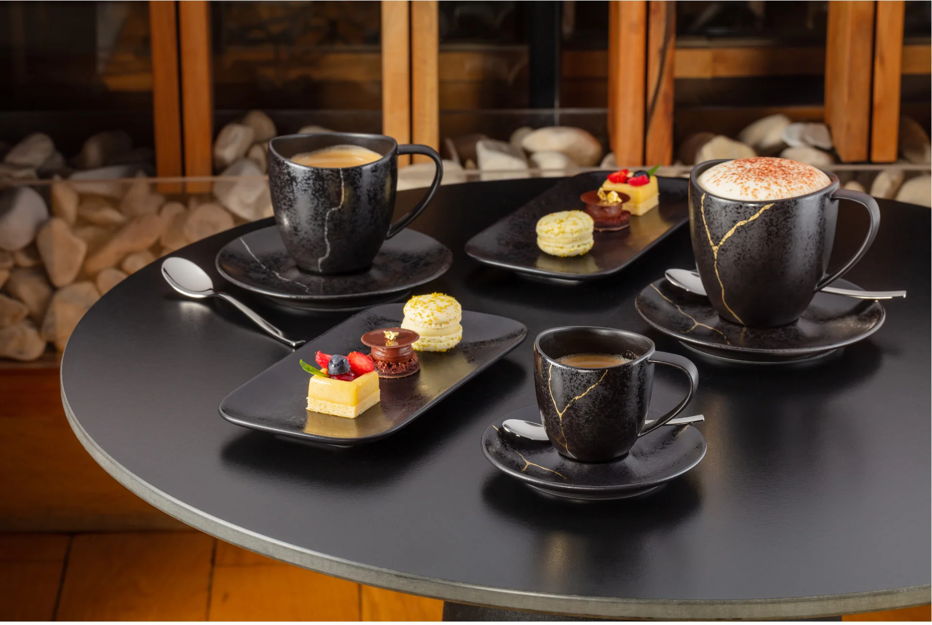 Linia KINTZOO to nawiązanie do japońskiej tradycji naprawy ceramiki, poprzez ponowne połaczenie pękniętych elementów złotem lub srebrem. Precyzyjnie naprawiony uszczerbek nadaje porcelanie unikalności i świadczy o jej historii, a metafora śladu pęknięcia symbolizuje szacunek do wszystkiego co nas otacza.