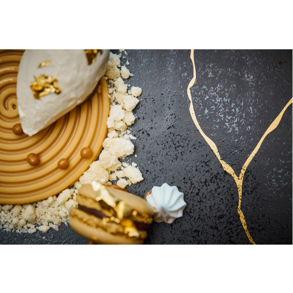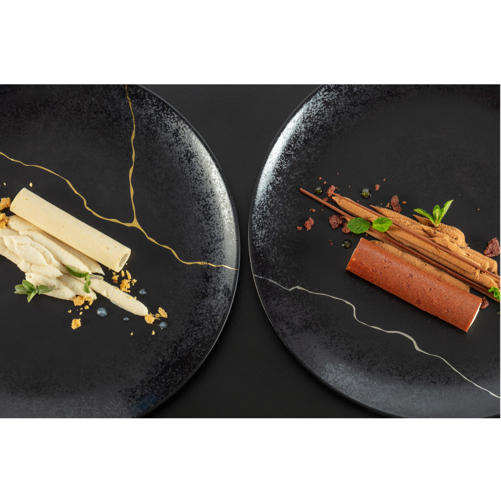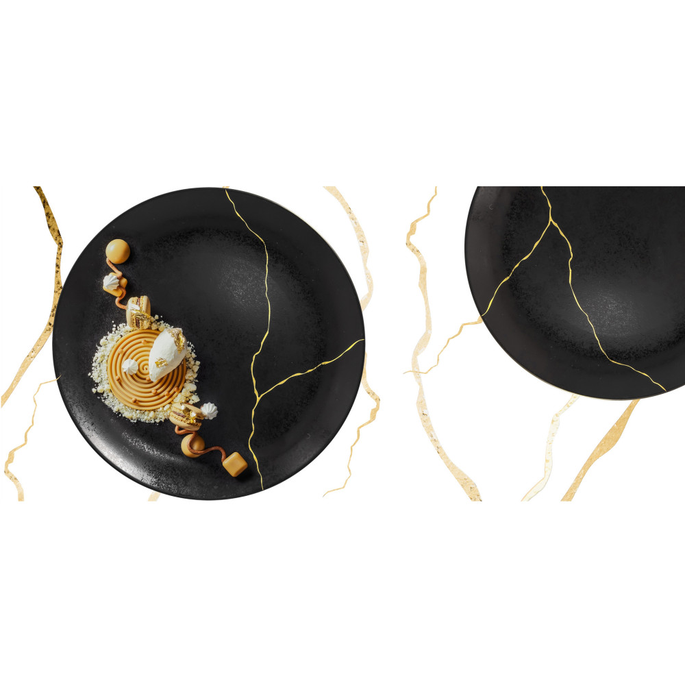 Linia KINTZOO to nawiązanie do japońskiej tradycji naprawy ceramiki, poprzez ponowne połaczenie pękniętych elementów złotem lub srebrem. Precyzyjnie naprawiony uszczerbek nadaje porcelanie unikalności i świadczy o jej historii, a metafora śladu pęknięcia symbolizuje szacunek do wszystkiego co nas otacza.