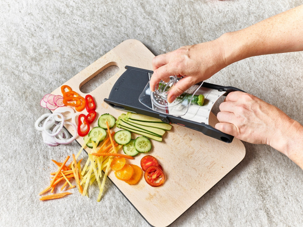 Wyjątkowo ostre ostrze o kącie 35º umożliwia krojenie w plastry i julienne 2 i 4 mm.