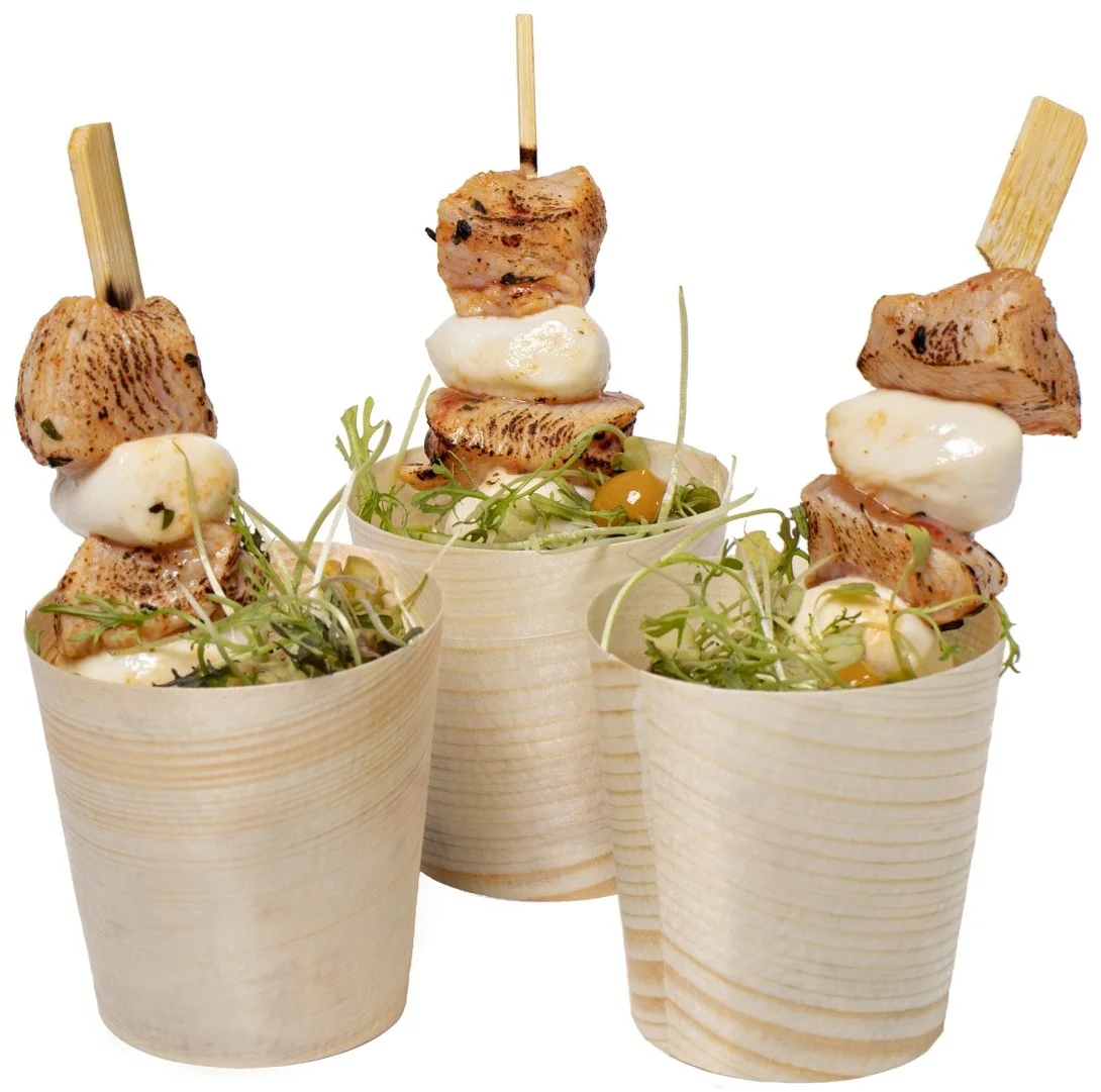 Bambusowe naczynia fingerfood to idealna propozycja na serwowanie wszelkiego rodzaju przystawek, przekąsek, koreczków, roladek czy mini hamburgerów. Z pewnością uatrakcyjnią przekąski na jeden kęs, nadając im nowoczesny wygląd. Są ekologiczne, biodegradowalne, w pełni naturalne. Specjalna struktura powierzchni podkreśla naturalny wygląd i sprawia, że każdy produkt jest wyjątkowy.